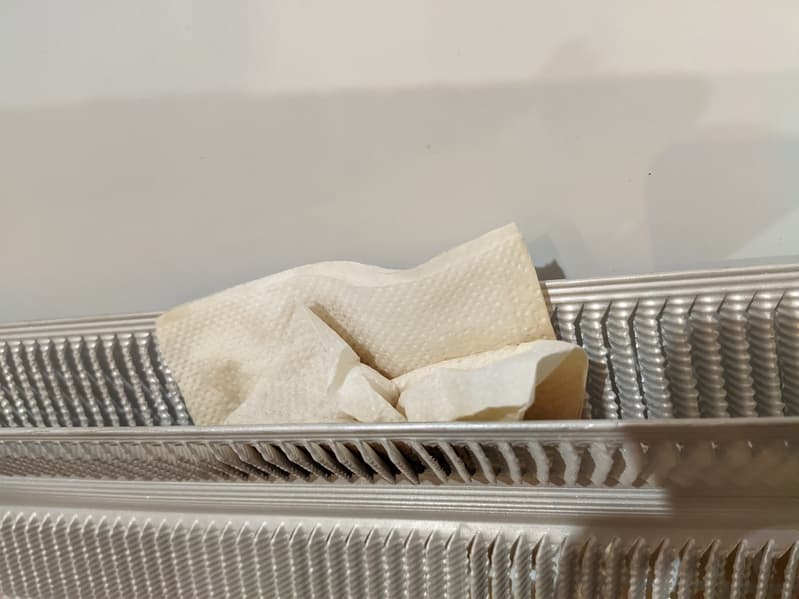 Мы разобрали наши конвекторы, снова вооружились бумажными салфетками и начали бросать их на нагревательные элементы.