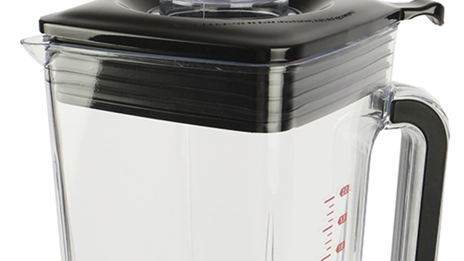Крышка из черного глянцевого пластика с внутренней стороны имеет широкое уплотнительное кольцо из резины. Деталь вставляется в кувшин с усилием и полностью исключает вылетание брызг в процессе работы. По бокам не сильно бросающимися в глаза мелкими буквами выдавлено предостережение не использовать устройство без установленной крышки, на английском и французском языках.