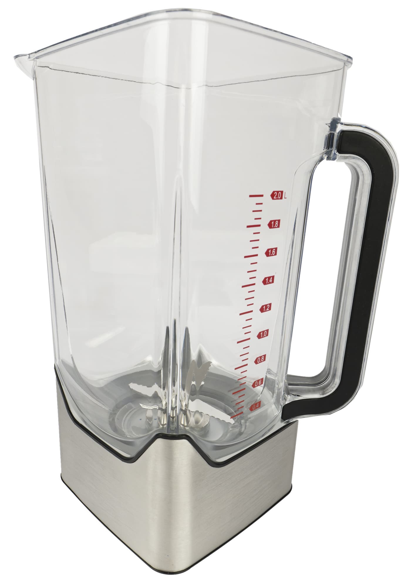 На одной из граней есть отметки от 0,4 до 2 литров с шагом 50 мл. Ручка крупная, удобная, по бокам оснащенная резиновой вставкой. У емкости есть носик. Если стакан накрыт крышкой, через отверстие носика ничего не прольется.