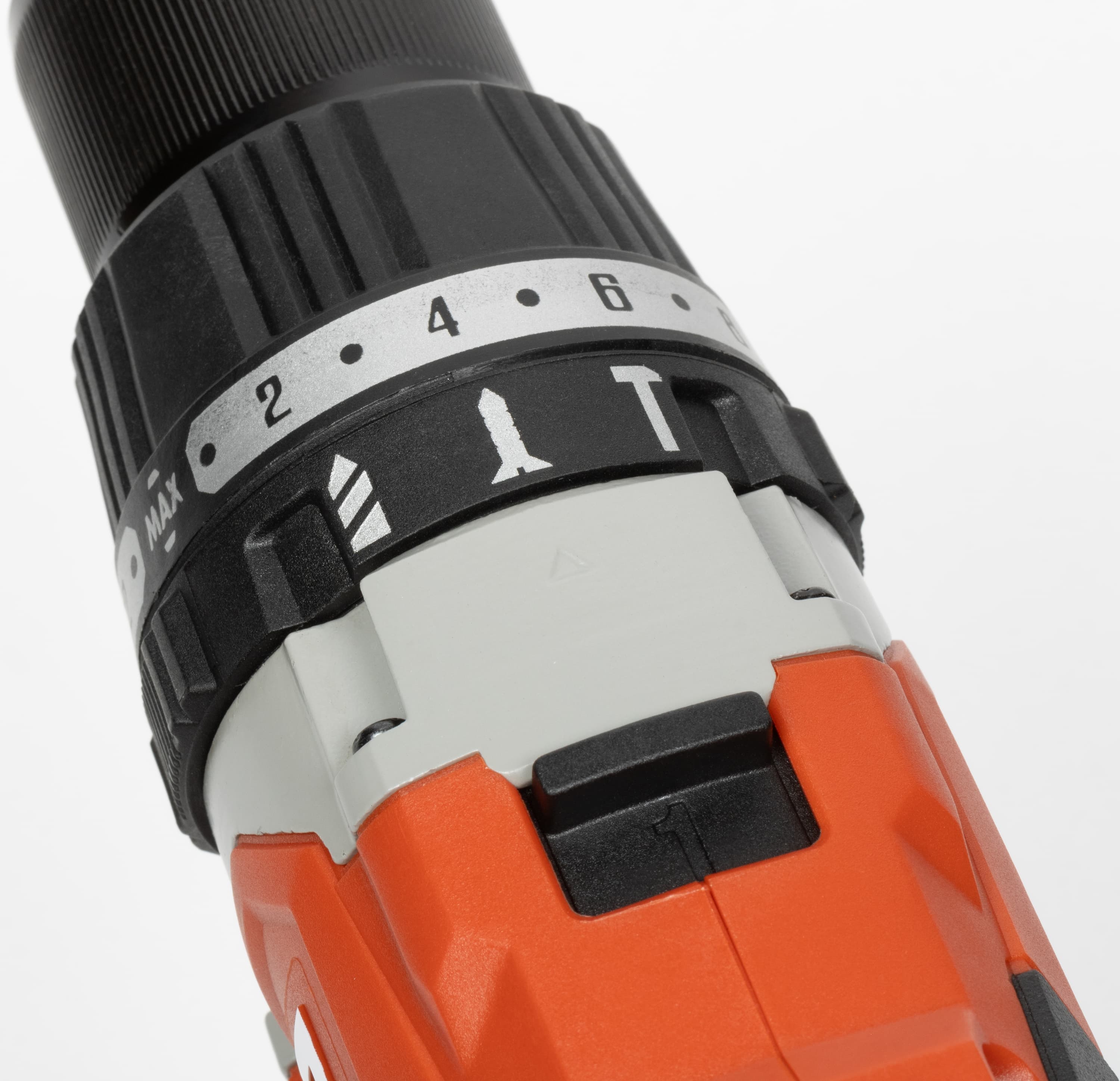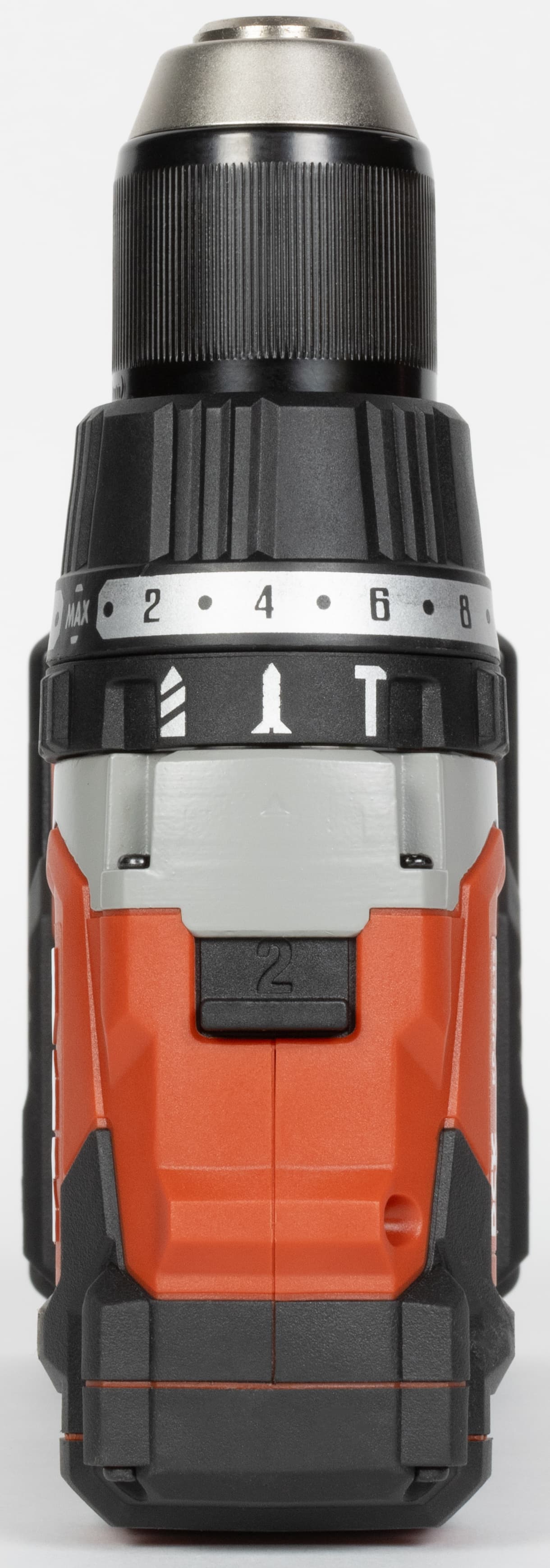 Кольцо с цифрами и делениями регулирует крутящий момент, каждое положение фиксируется с тактильно отчетливым и хорошо слышным щелчком. Выбор режима работы осуществляется вторым кольцом, на котором нанесены пиктограммы сверла, самореза и молотка. Первый режим — сверление. Второй (средний) — шуруповерт с активной «трещоткой». И, наконец, третий режим — сверление с ударом.