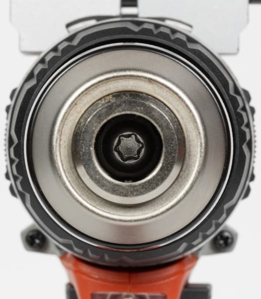Кончик муфты выполнен из металла, остальное наружное покрытие — пластик. Поскольку здесь используется муфта с блокировкой шпинделя, замену оснастки можно произвести буквально одной рукой.