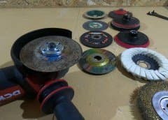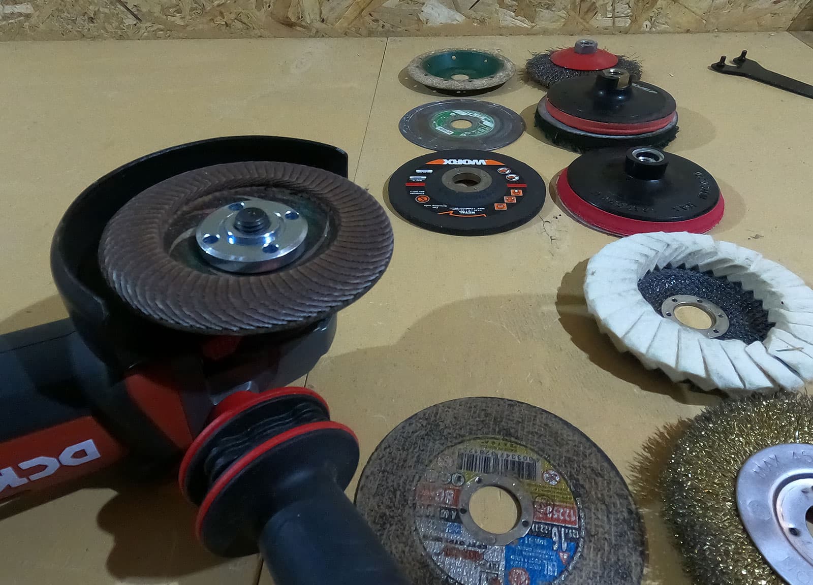 Для тестирования УШМ были приготовлены насадки разного назначения — по дереву, металлу и бетону.