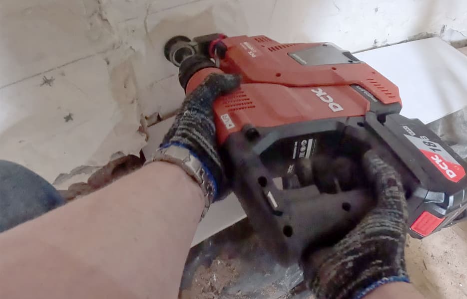 Как по ощущениям, так и по эффекту, производительность инструмента оказалась не ниже, чем у мощного сетевого перфоратора. Излишне говорить, как облегчает работу отсутствие проводов. Однако за мобильность приходится платить: время автономной работы таких мощных инструментов не превышает 20 минут.