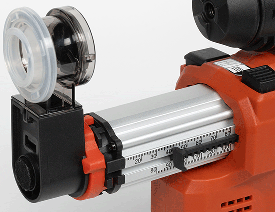 Однако если вы используете блок для удаления пыли — о подсветке забудьте: пылеуловитель, пристегнутый к перфоратору, перекрывает луч.