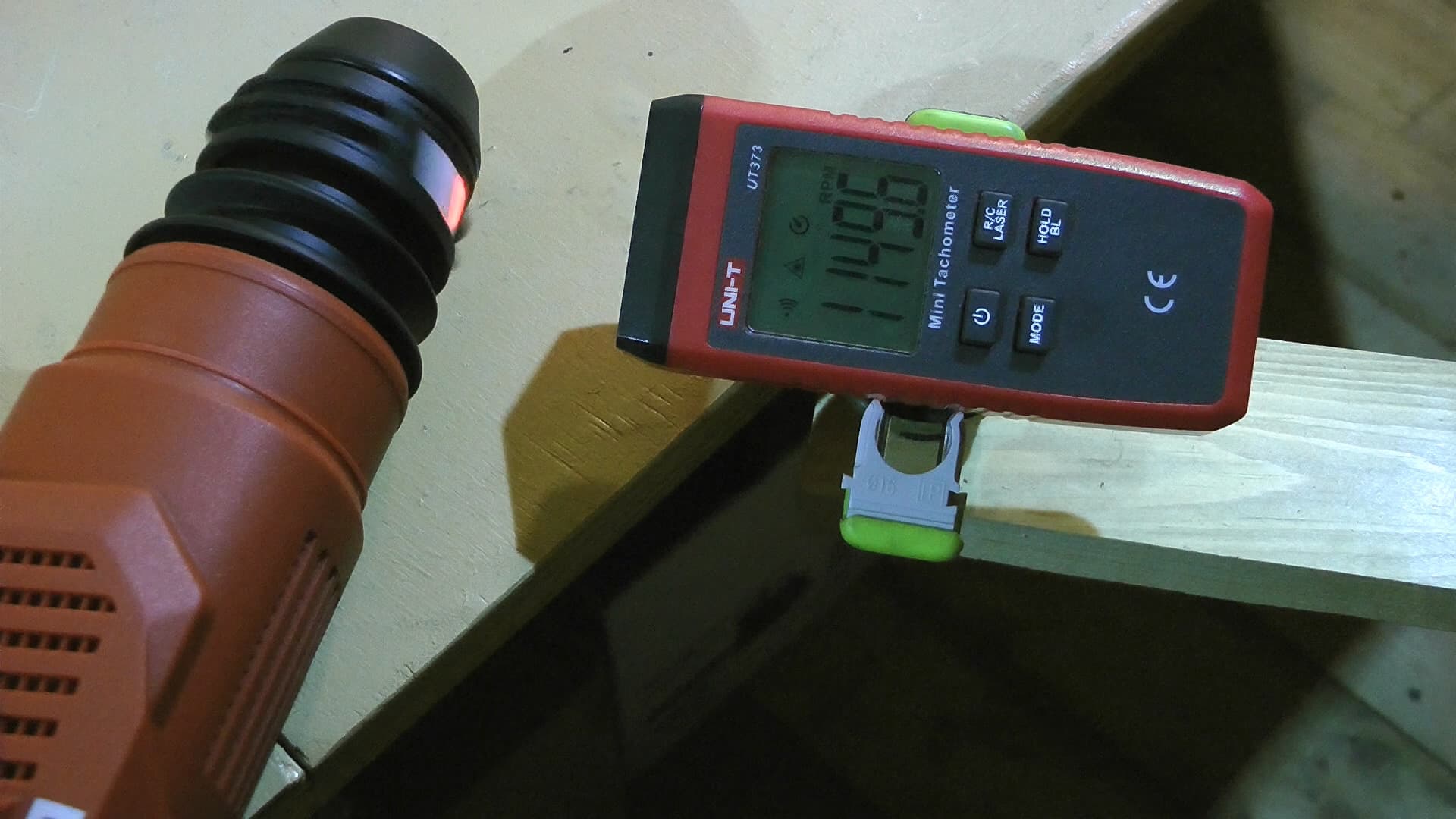 Именно по этой причине скорость в перфораторах невысока. Максимальное количество оборотов в минуту (по паспорту) здесь составляет 1125. Наши измерения показали чуть более высокую скорость, 1150 об/мин.