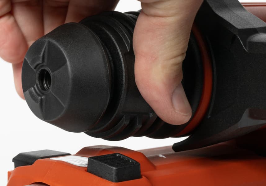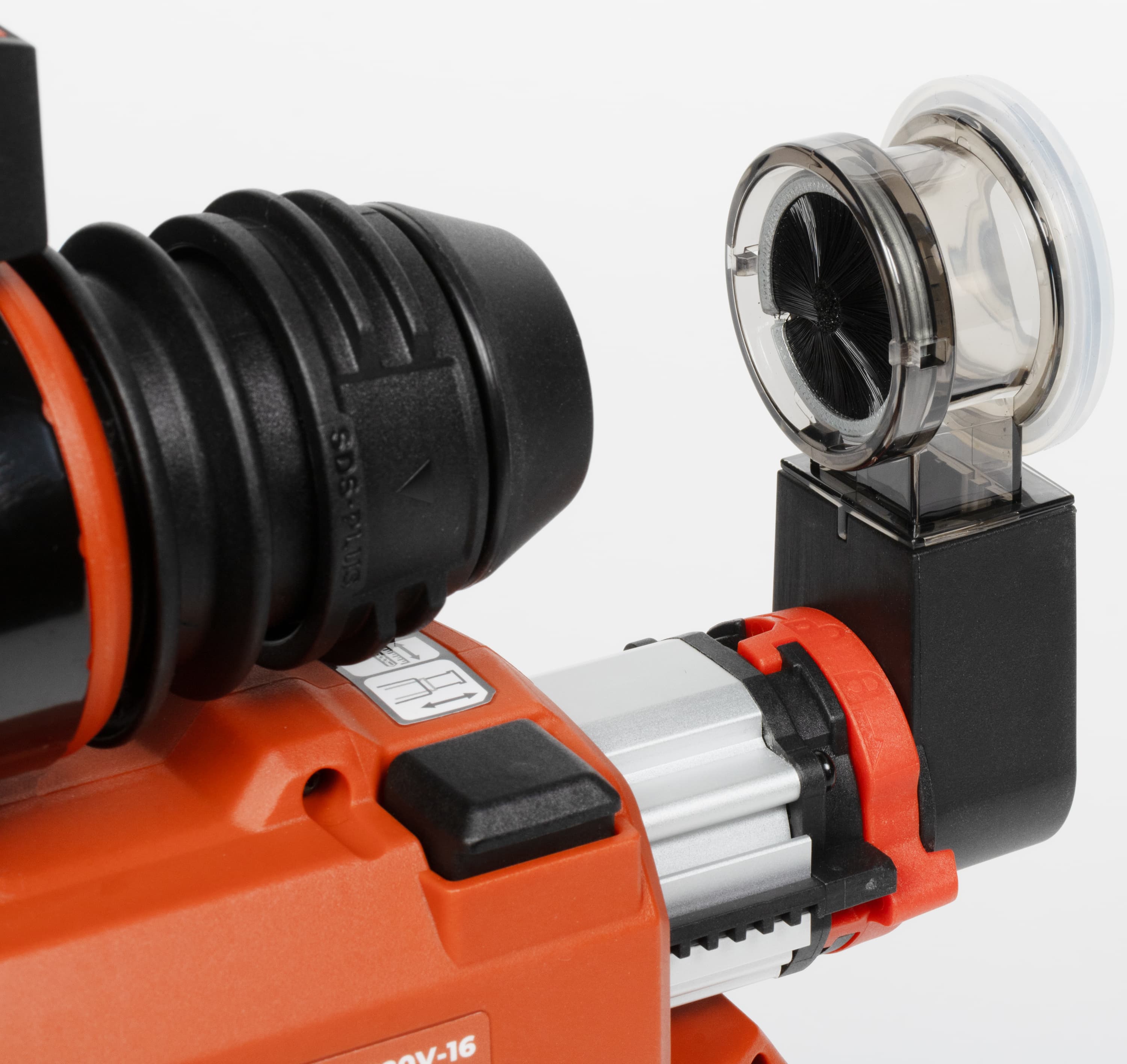 Если планируется пыльная работенка, которая еще и проводится в помещении, то без пылесоса будет сложно. Многие наверняка так и делают: один сверлит стену, а второй держит около бура трубку работающего пылесоса. Но с нашим перфоратором держальщик пылесоса больше не нужен, его с успехом заменяет специальная насадка.