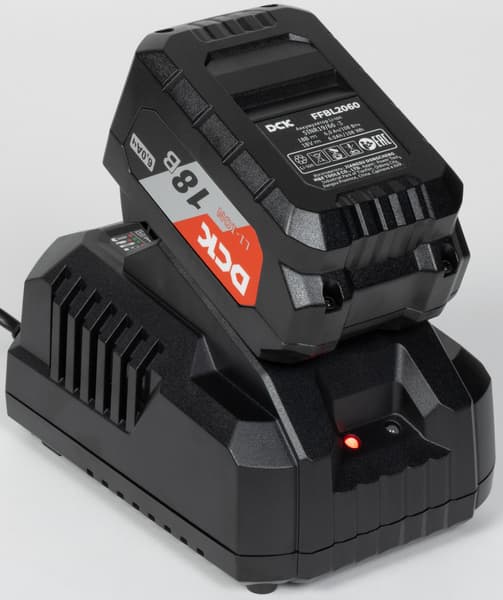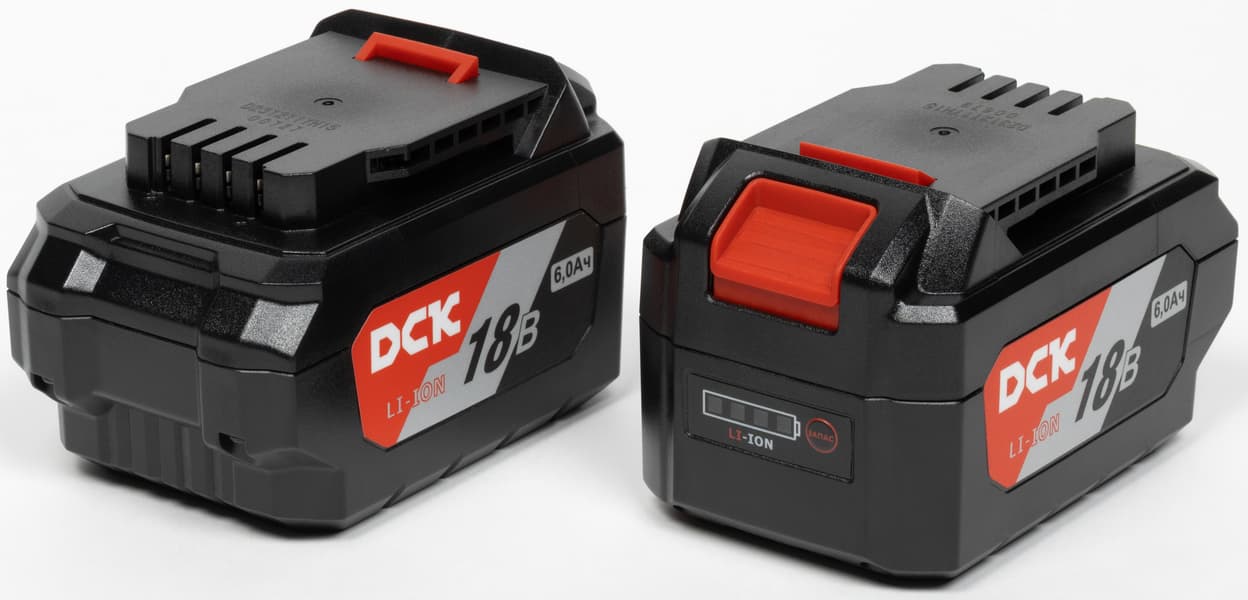 Перфоратор работает от 18-вольтовой батареи, в комплекте имеется два таких аккумулятора емкостью 6 А·ч каждый. Аккумуляторы снабжены встроенным индикатором оставшегося заряда.