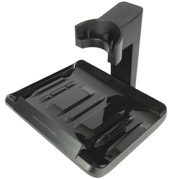В нижней части подставки есть два углубления, в которых собирается излишек воды при промывке устройства. К вертикальной стойке подключается адаптер постоянного тока, обеспечивающий зарядку.