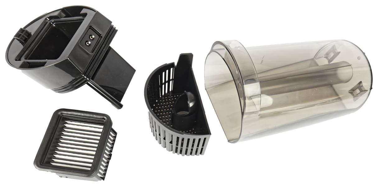 Отсек для мусоросборника расположен в нижней части корпуса. Контейнер плотно удерживается в нем с помощью пластиковых защелок, но его без труда можно вынуть для очистки.