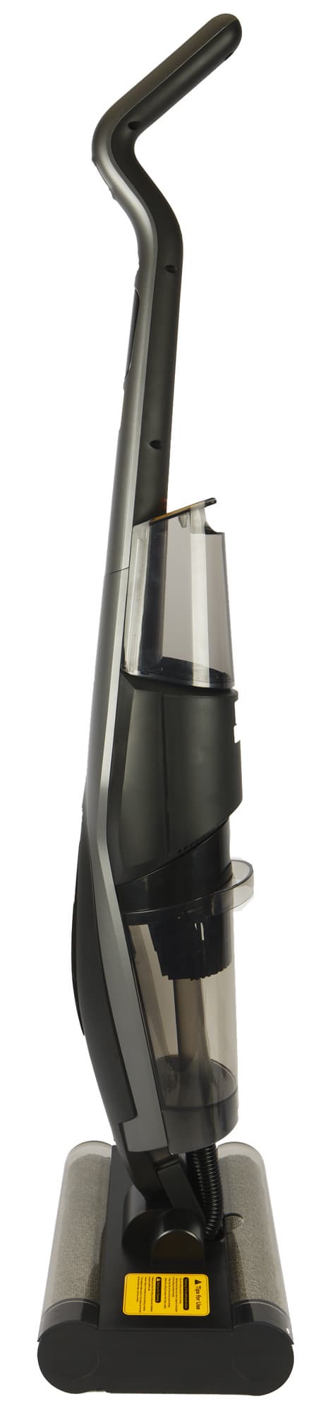 В обоих направлениях пылесос перемещается без усилия: вращающиеся щетки компенсируют сопротивление друг друга на любых покрытиях — от ламината до ковролина. Мягкие роторы равномерно и эффективно протирают пол, не оставляя разводов и потеков, а качество уборки показалось нам заметно лучшим, чем в однороторных моделях.