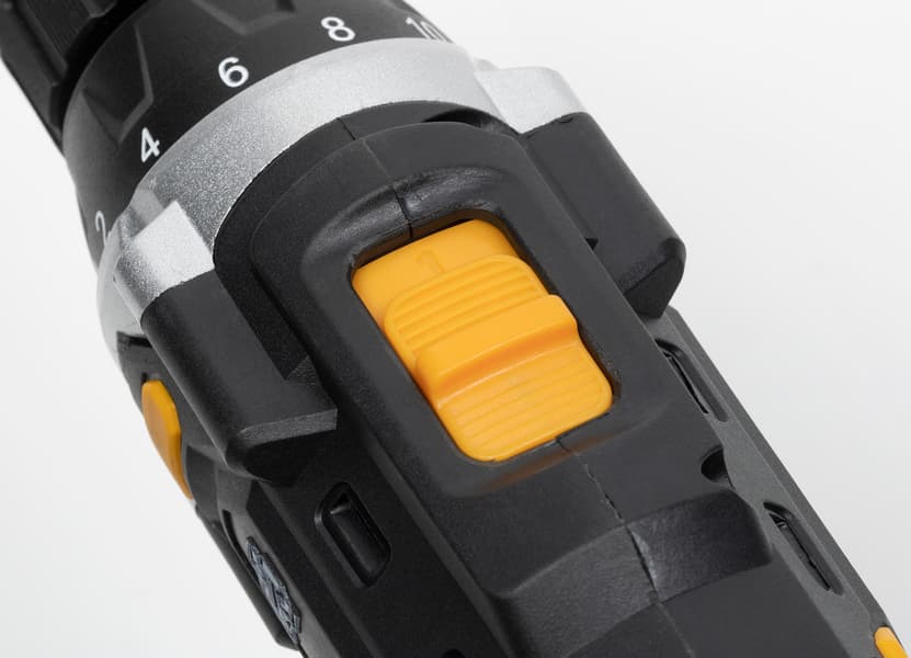 Диапазоны скоростей переключаются стандартным ползунком, расположенным сверху. И здесь производитель тоже сэкономил на капле краски, чтобы цифры 1 и 2 были хоть как-то заметны. Впрочем, такое встречается почти во всех шуруповертах. Наверное, традиция.