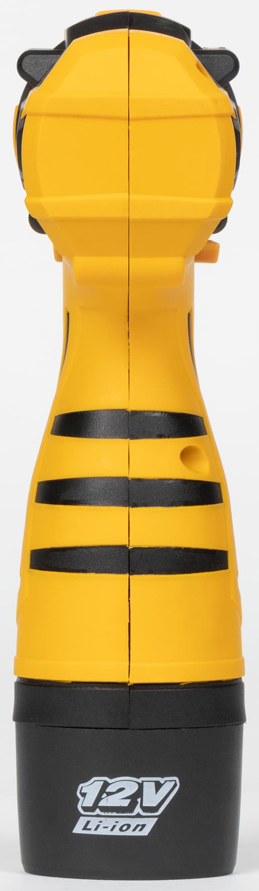 Отдельное спасибо производителю за яркий пчелиный окрас шуруповерта. Такой контраст не затеряется среди других инструментов или в груде строительного хлама. А вот резины по борту явно маловато. Если с тыльной стороны имеется три резиновых вставки-полоски, то в месте соприкосновения с пальцами (под рычагом пуска, где осуществляется основной хват) никакой резины нет.