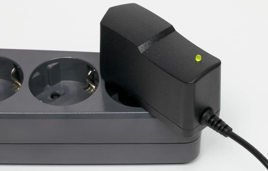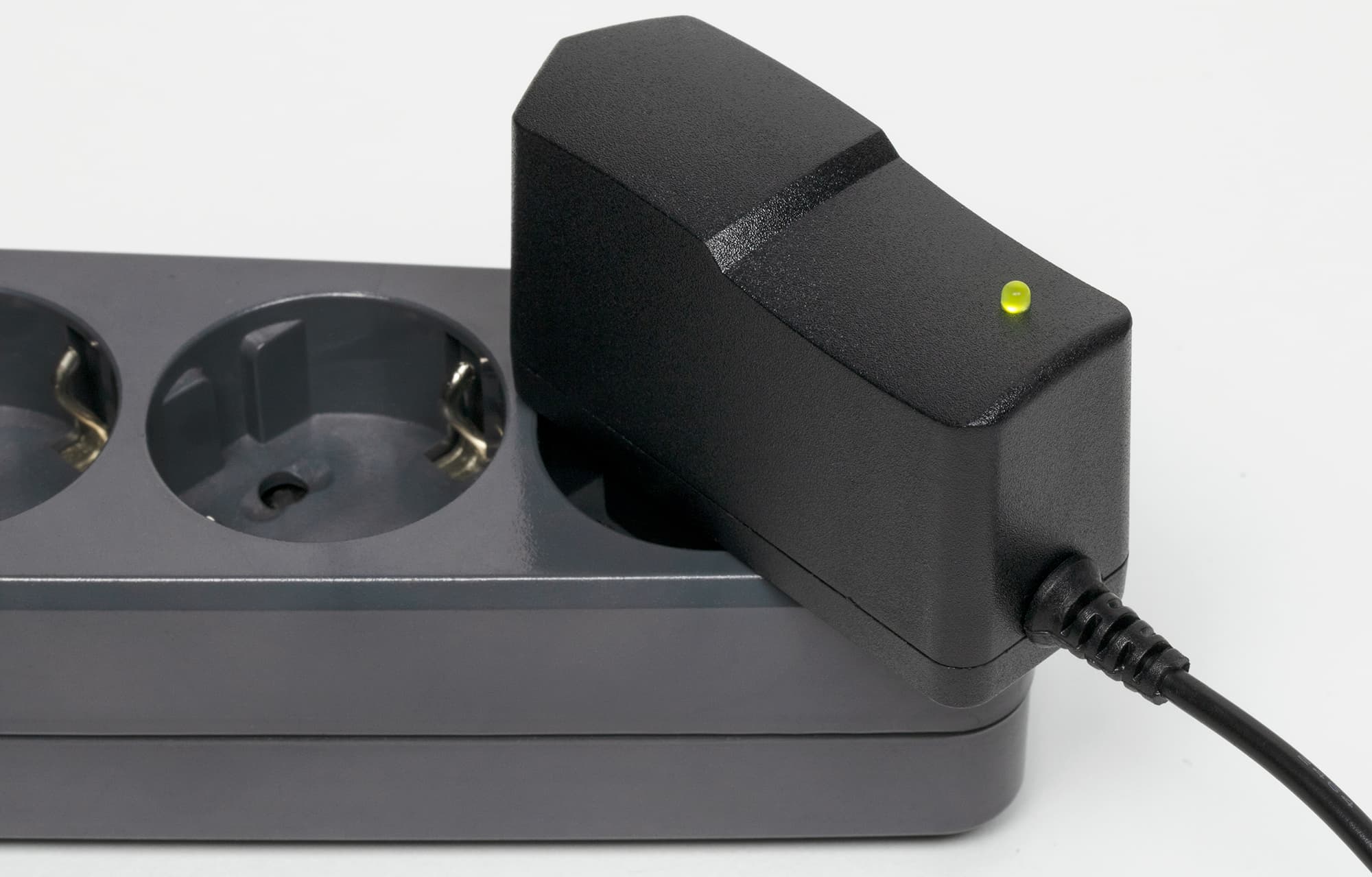 Во время зарядки светодиод адаптера светится красным цветом, а по завершении зарядки цвет меняется на зеленый.