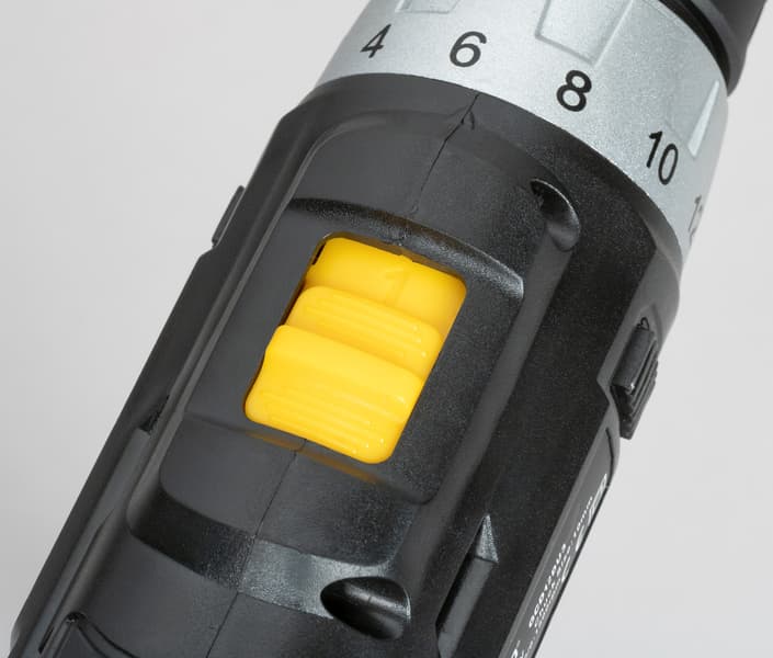 Переключатель реверса имеет три положения: вращение шпинделя по часовой, нейтраль и вращение против часовой. Среднее (нейтральное) положение переключателя блокирует спусковой крючок (главный выключатель), препятствуя его нажатию. Этот выключатель имеет тугой 8-миллиметровый ход с плавной регулировкой скорости вращения шпинделя.
