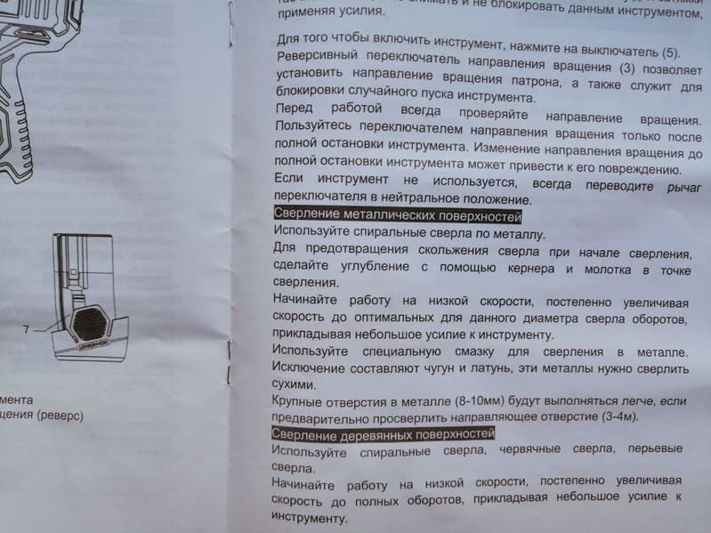 Прилагаемая инструкция хоть и краткая, но довольно толковая, а это нынче большущая редкость. В ней не только перечисляются обязательные сертификаты и прочие скучные вещи, но и описывается конструкция инструмента, и даже приводятся практические советы, способы и основные приемы работы с шуруповертом, что совсем нехарактерно для нынешних скупых руководств.