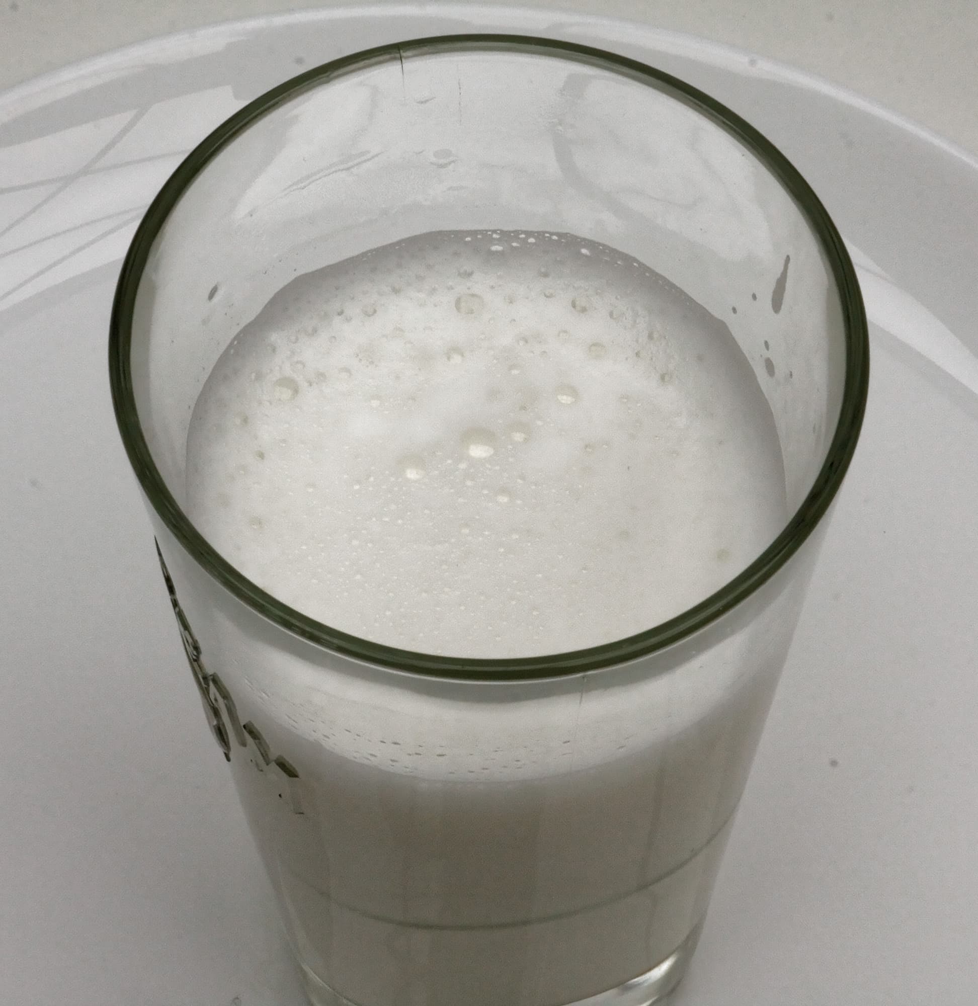 Молочная пена взбивается с помощью ручного капучинатора. Как водится, мы взяли молоко с повышенным содержанием белка (обычно оно же отличается повышенной жирностью).