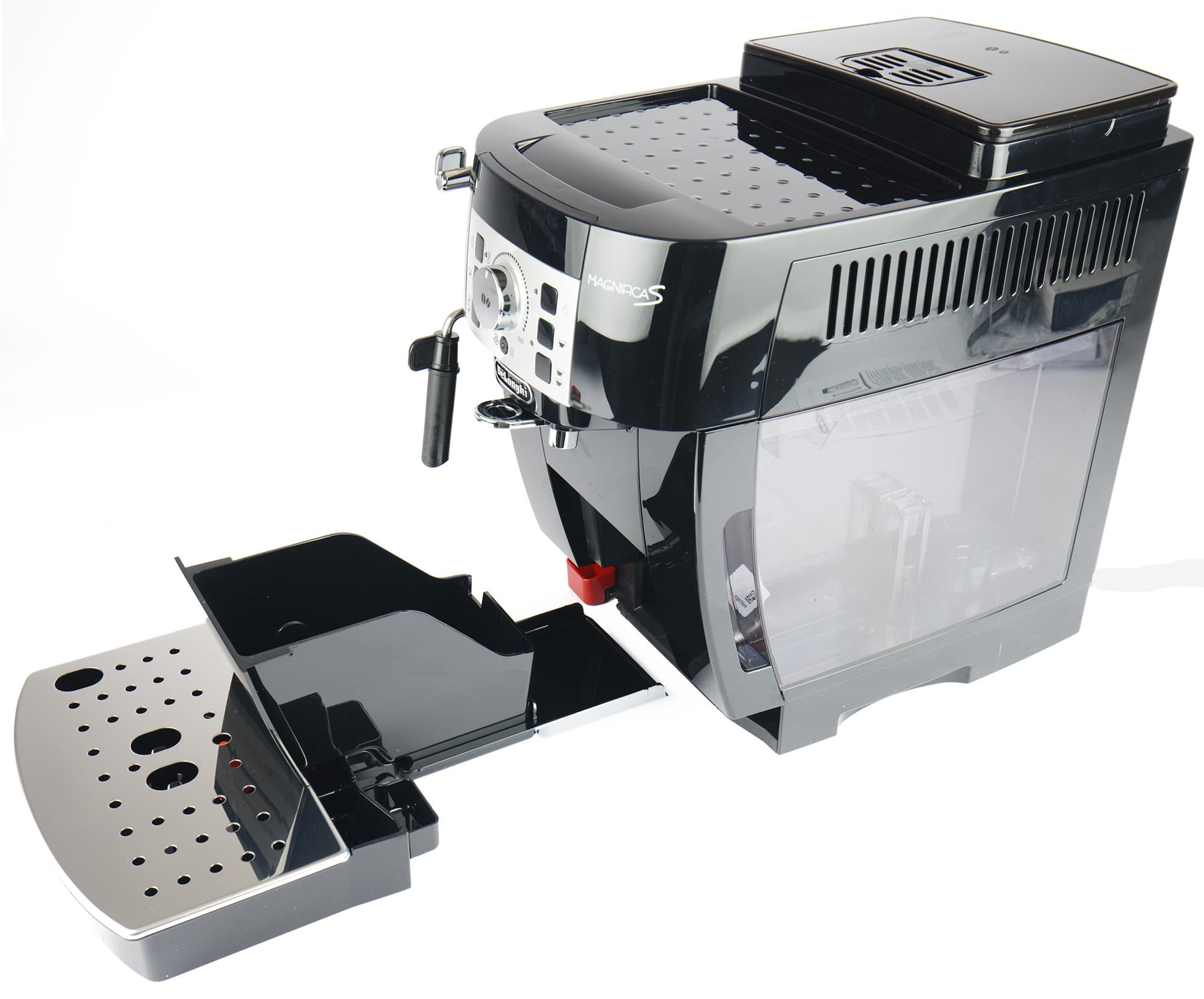 Герой нашего сегодняшнего обзора — еще одна далеко не новая, но по сей день пользующаяся спросом модель De’Longhi, Magnifica S (ECAM 22.110.B). Более того: на сегодняшний день это самая дешевая модель, представленная на официальном сайте. Давайте разберемся, что же умеет самый бюджетный автомат De’Longhi и каковы его возможности. Мы постараемся относиться к прибору не слишком строго: все-таки возраст у аппарата уже солидный, да и статус младшей на сегодняшний день модели недвусмысленно намекает, что чудес тут ждать не стоит.