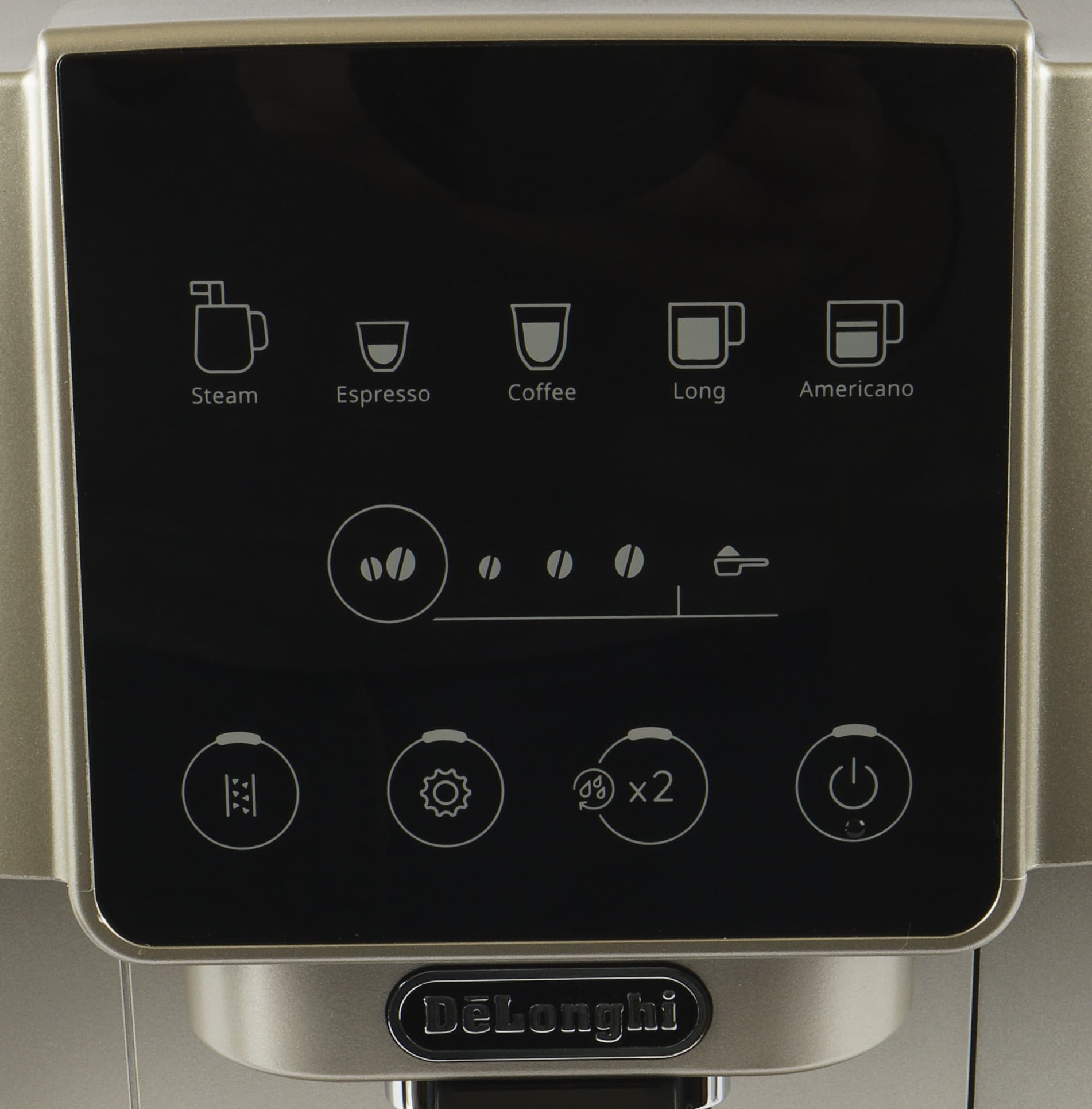Взаимодействие кофемашины с пользователем осуществляется с помощью сенсорных кнопок (производитель полностью отказался от физических органов управления типа традиционных кнопок и ручек) и набора светодиодных индикаторов.