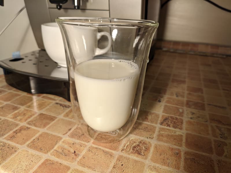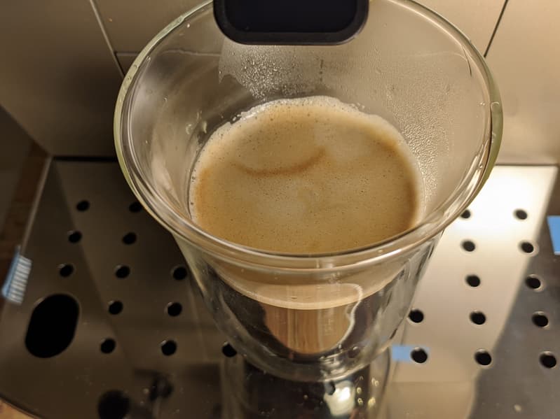 С режимом американо также оказалось все хорошо. За 1,5 минуты мы получим около 150 г напитка с температурой около 78 °C. При этом новая магнифика сначала приготовит честный эспрессо, а потом честно нальет горячей воды (а не прольет ее через кофейную таблетку).