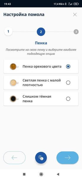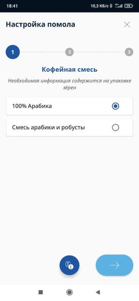 Вначале предлагается указать, какое зерно вы используете — арабику или смесь с робустой. Затем — степень обжарки.