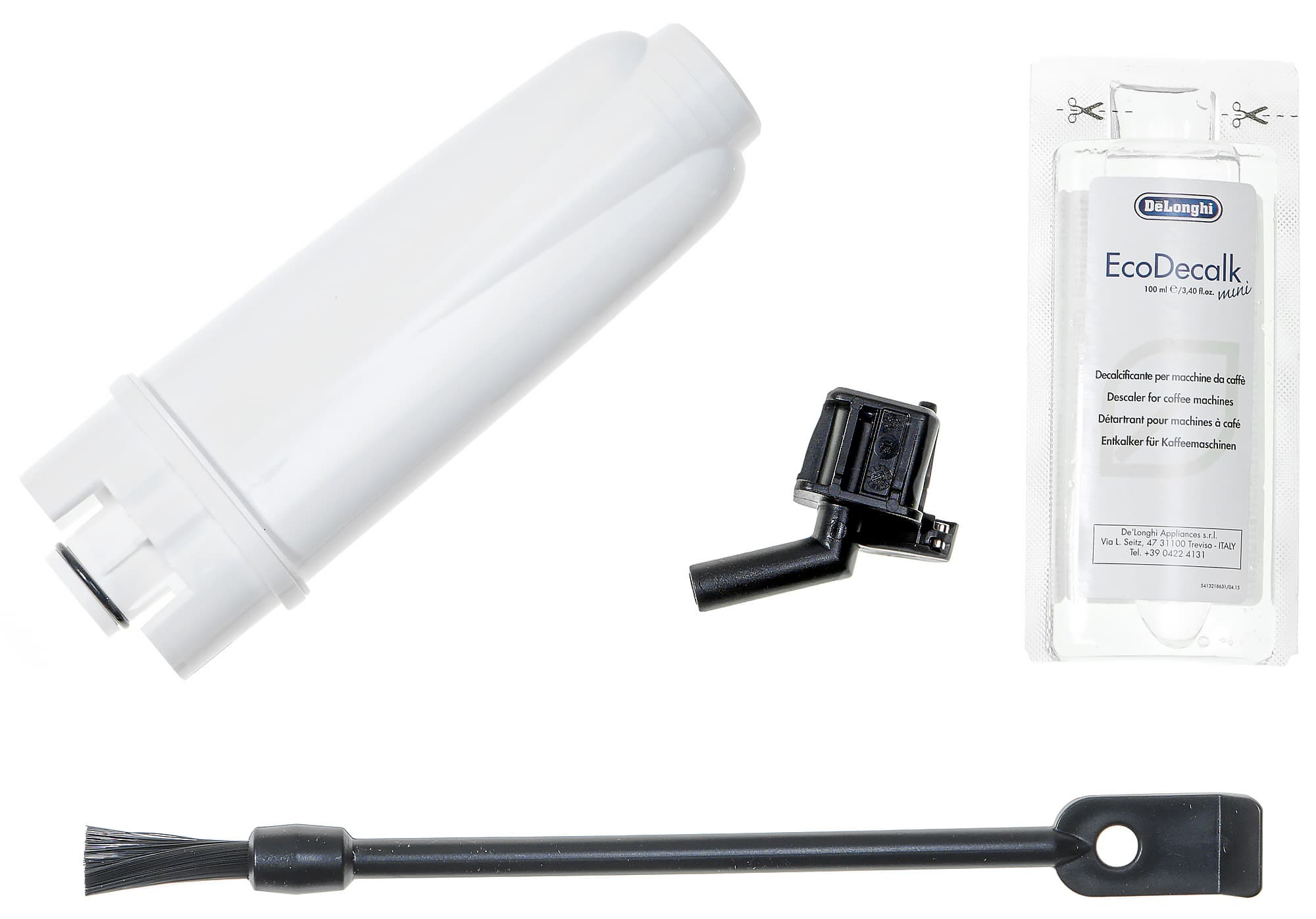 Что можно сказать про комплектацию? Тут есть все для того, чтобы начать пользоваться прибором (кроме, разве что, кофе) и провести первое обслуживание (очистку) без необходимости идти в магазин.