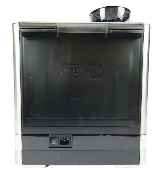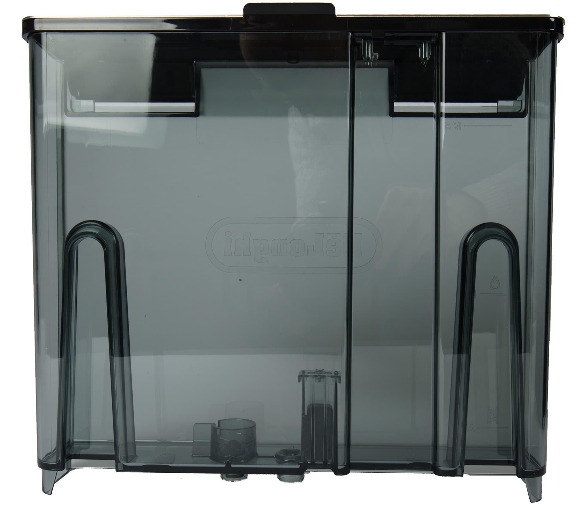 Контейнер для воды сделан из затемненного пластика, его объем составляет 2,5 литра. Устанавливается он сзади-сверху прибора. Внутри предусмотрено место для установки фильтра (не входит в стандартную комплектацию). На контейнере нанесен логотип De’Longhi, а на боковых гранях можно увидеть риски, соответствующие минимальному и максимальному уровню воды.