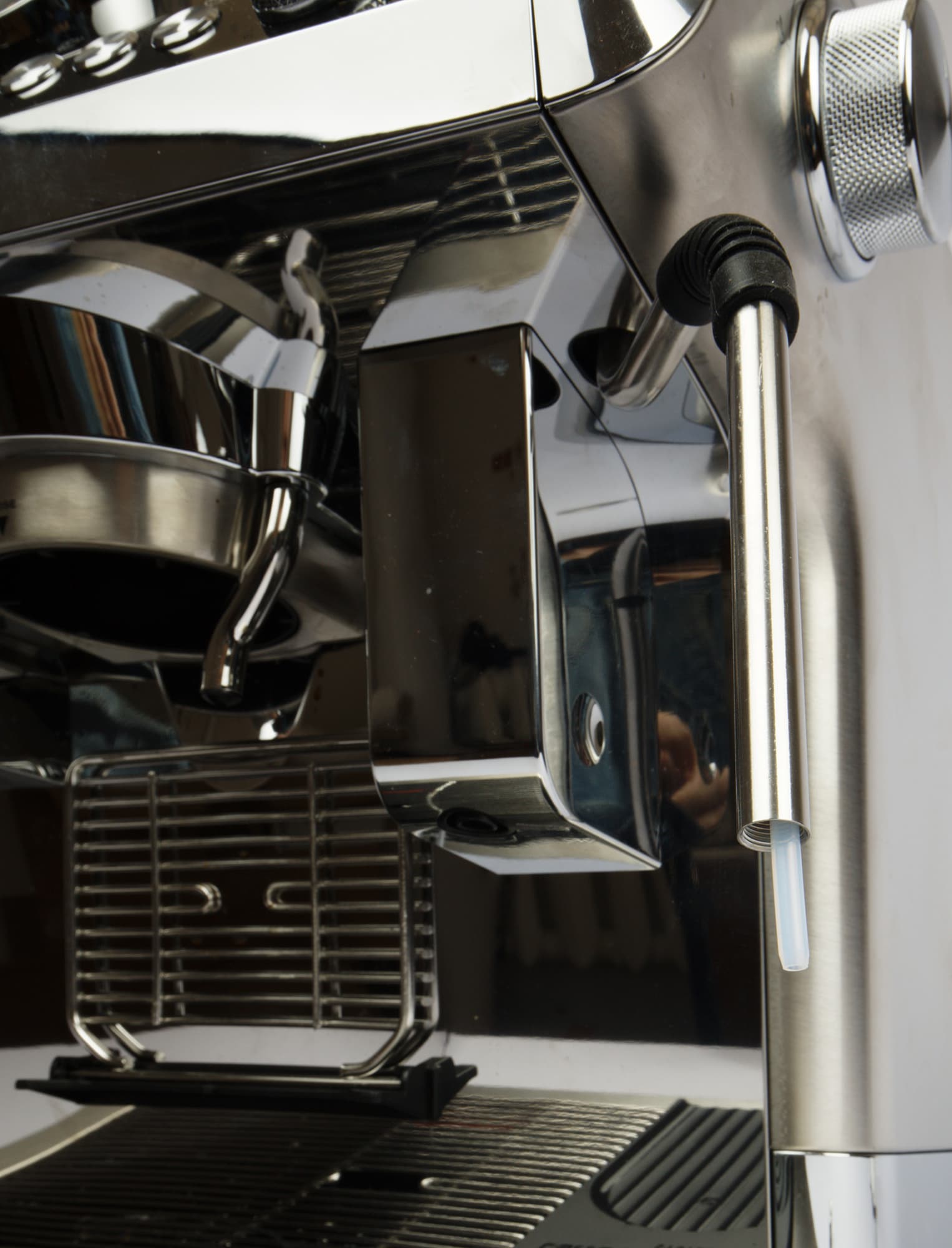 Ручка подачи пара находится на правой стороне кофейной станции.