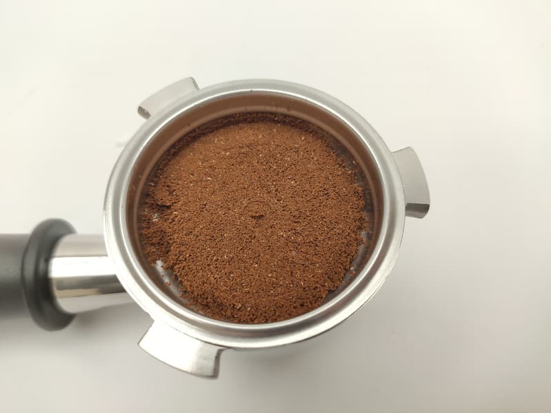 Вот так, например, у нас выглядел утрамбованный кофе в фильтре на одну порцию.