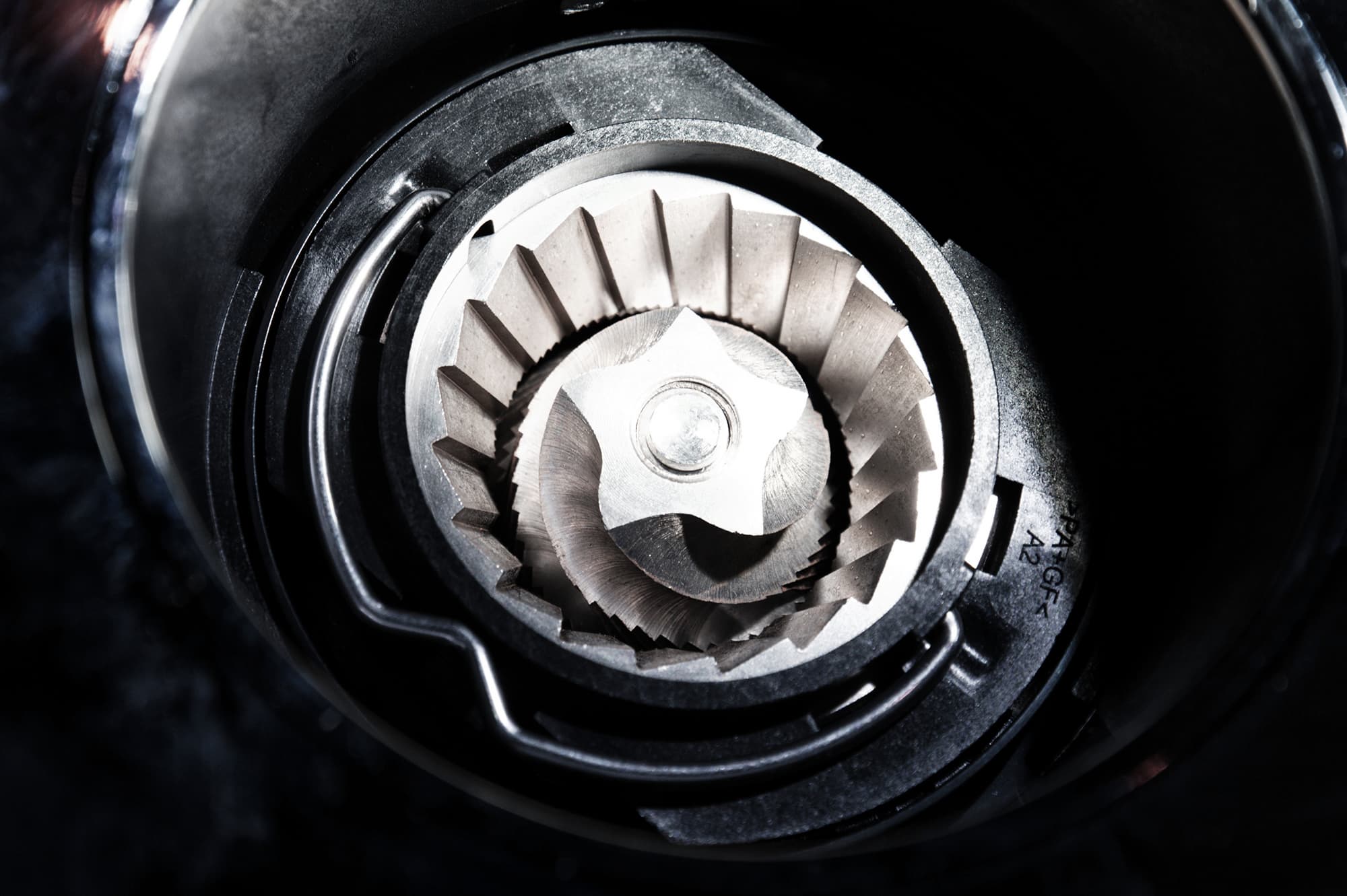 Кофемолка у нашей кофемашины оснащена коническими жерновами. Вот так система выглядит в сборе.