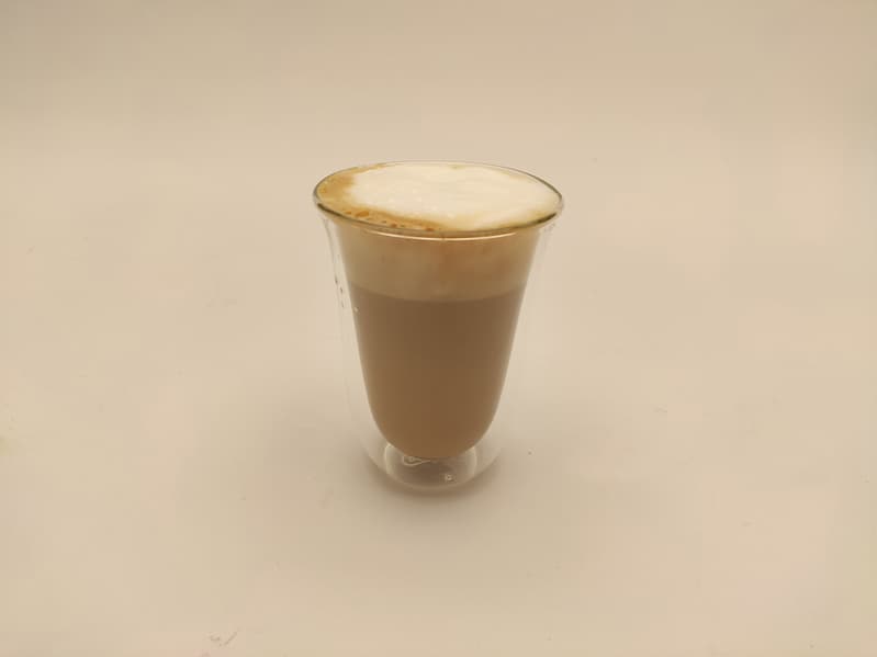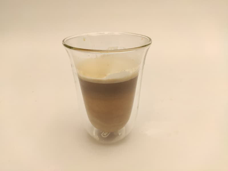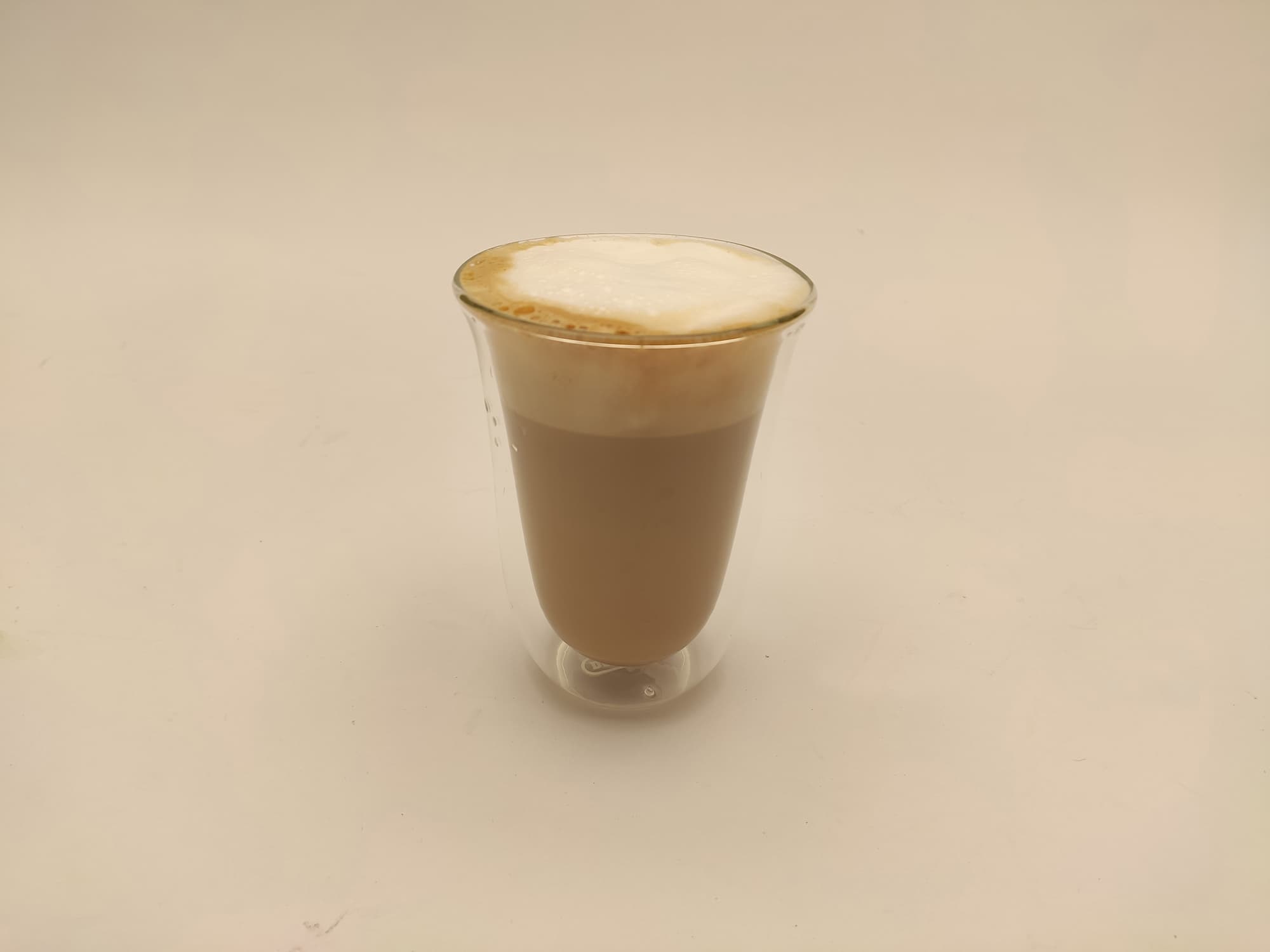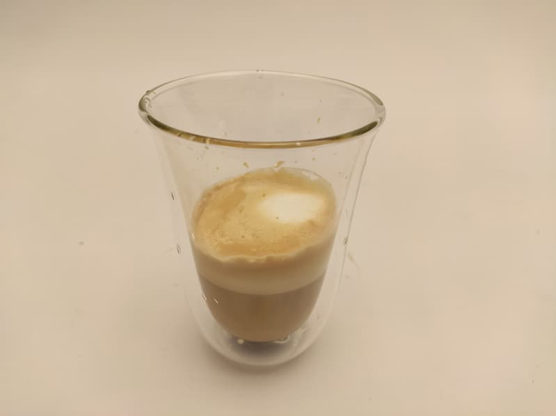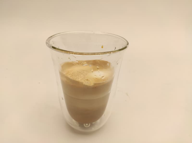 Вот так выглядит готовый напиток со взбитой вручную молочной пеной после добавления эспрессо.