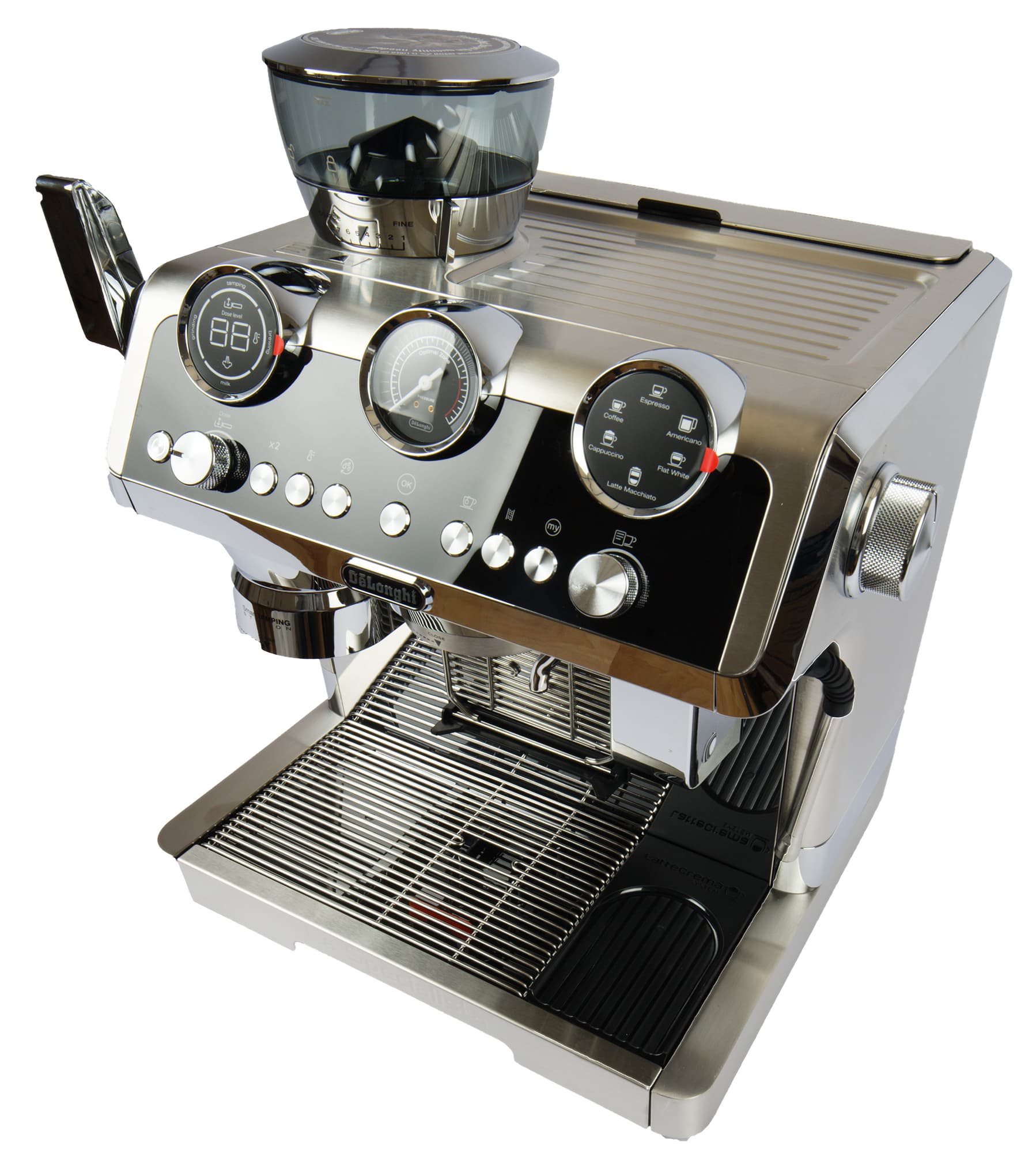 Не так давно в нашу редакцию попала кофейная станция De’Longhi La Specialista EC9355.M, которую мы с удовольствием рассмотрели со всех сторон, изучили и, конечно же, приготовили различные кофейные напитки. Герой нашего сегодняшнего обзора — улучшенная и продвинутая версия «Специалисты», которая обзавелась двумя светодиодными дисплеями, автоматическим устройством для взбивания молока и еще рядом функций.