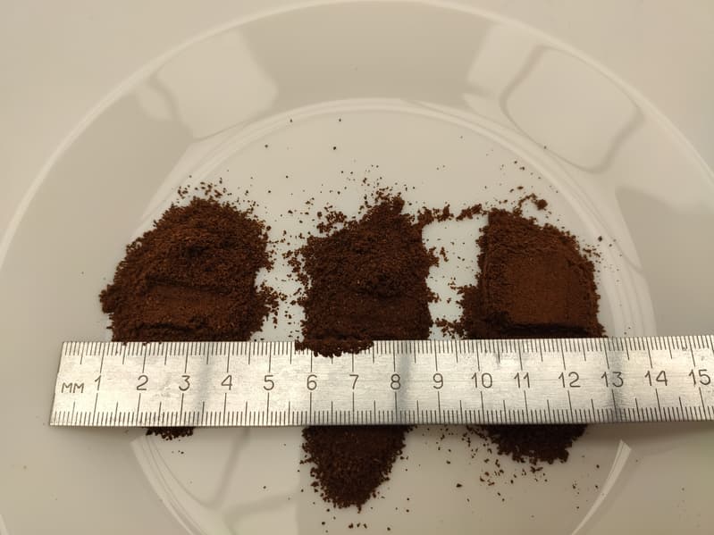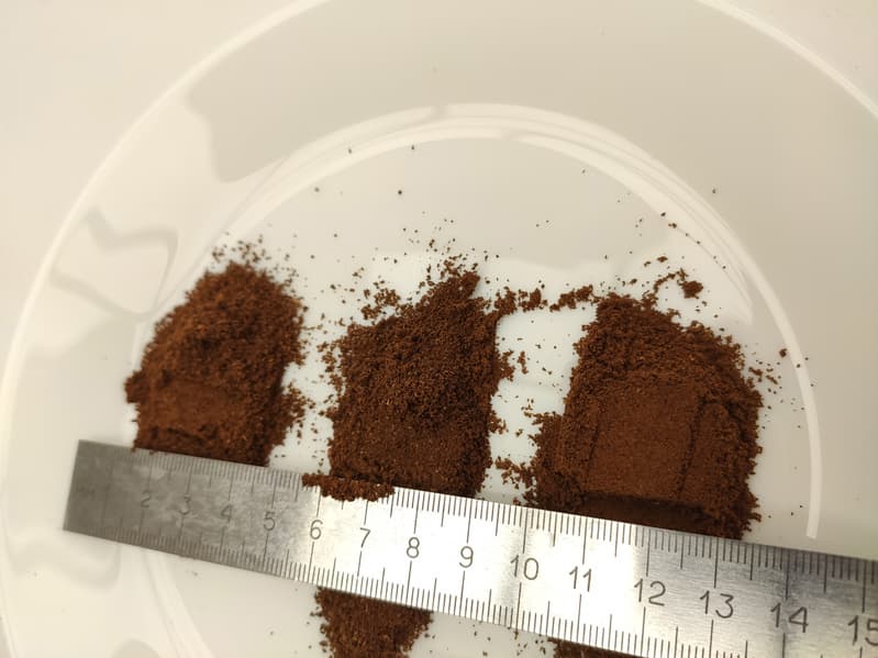 Наконец, взглянем на помол. Мы выставили минимальный, максимальный и средний помол на встроенной кофемолке и зафиксировали результат.