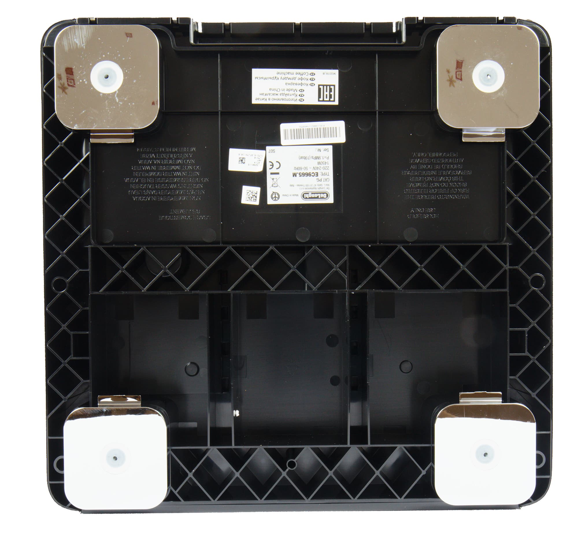 Начнем с нижней стороны. На дне устройства мы видим резиновые ножки и наклейки с технической информацией. В целом — ничего примечательного.