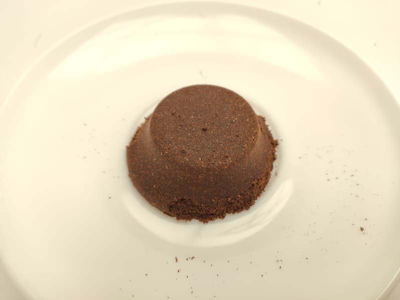 Вот так выглядела отработанная кофейная таблетка. Как мы видим, остатков влаги в ней почти нет.