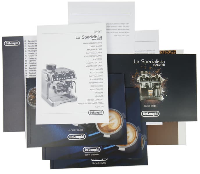 Как водится у De’Longhi, руководство пользователя составлено аккуратно и содержит исчерпывающую информацию. Все необходимые действия пользователя и режимы сопровождаются иллюстрациями. Читать инструкцию строго рекомендуется: наша кофейная станция имеет немало особенностей, которые не являются интуитивно понятными для тех, кто ранее не сталкивался с подобной техникой. Да и для тех, кто сталкивался — многие моменты наверняка окажутся неочевидны.
