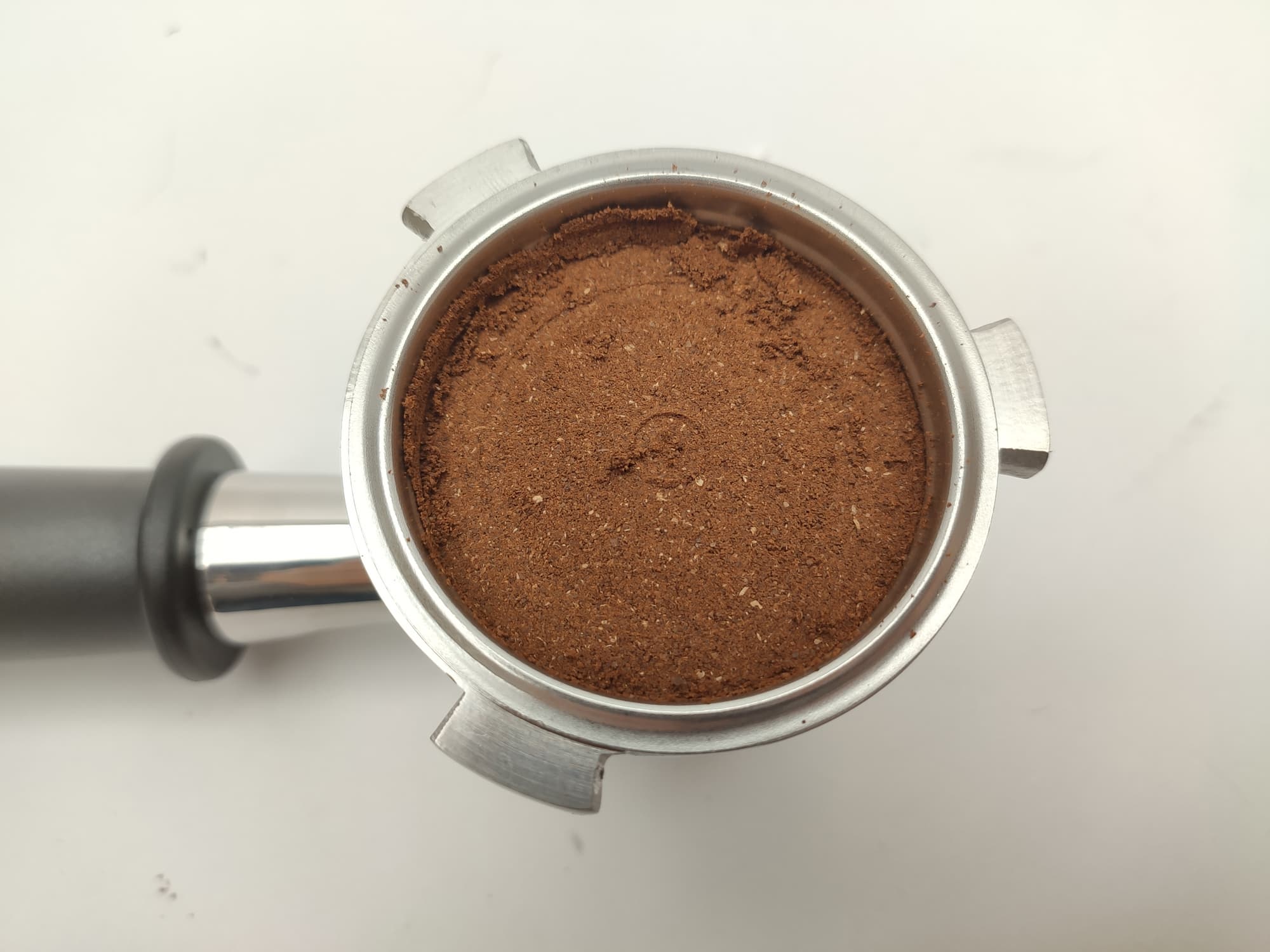 А вот двойная порция — как мы видим, часть кофе у стенок оказалась спрессована недостаточно хорошо.