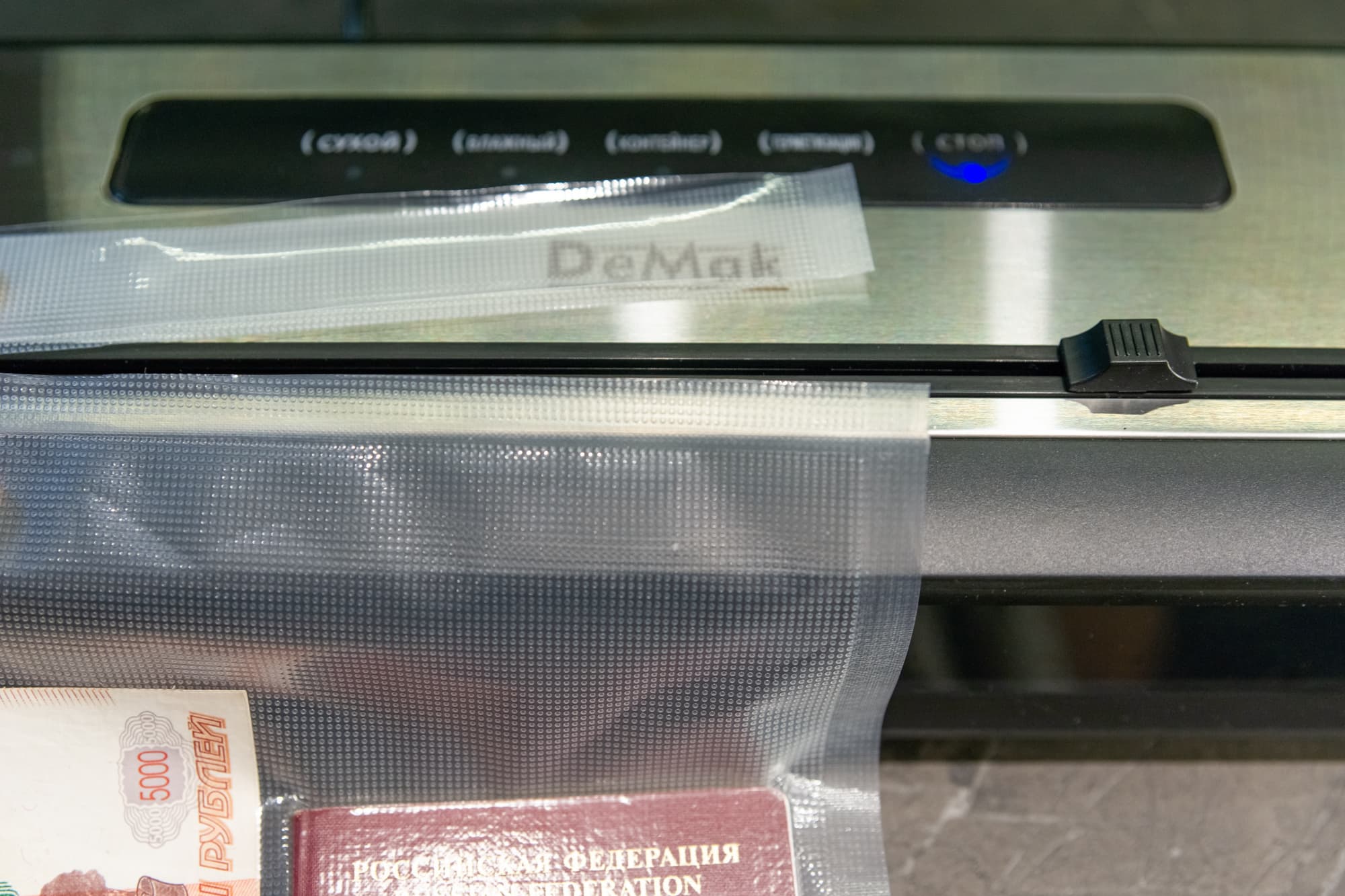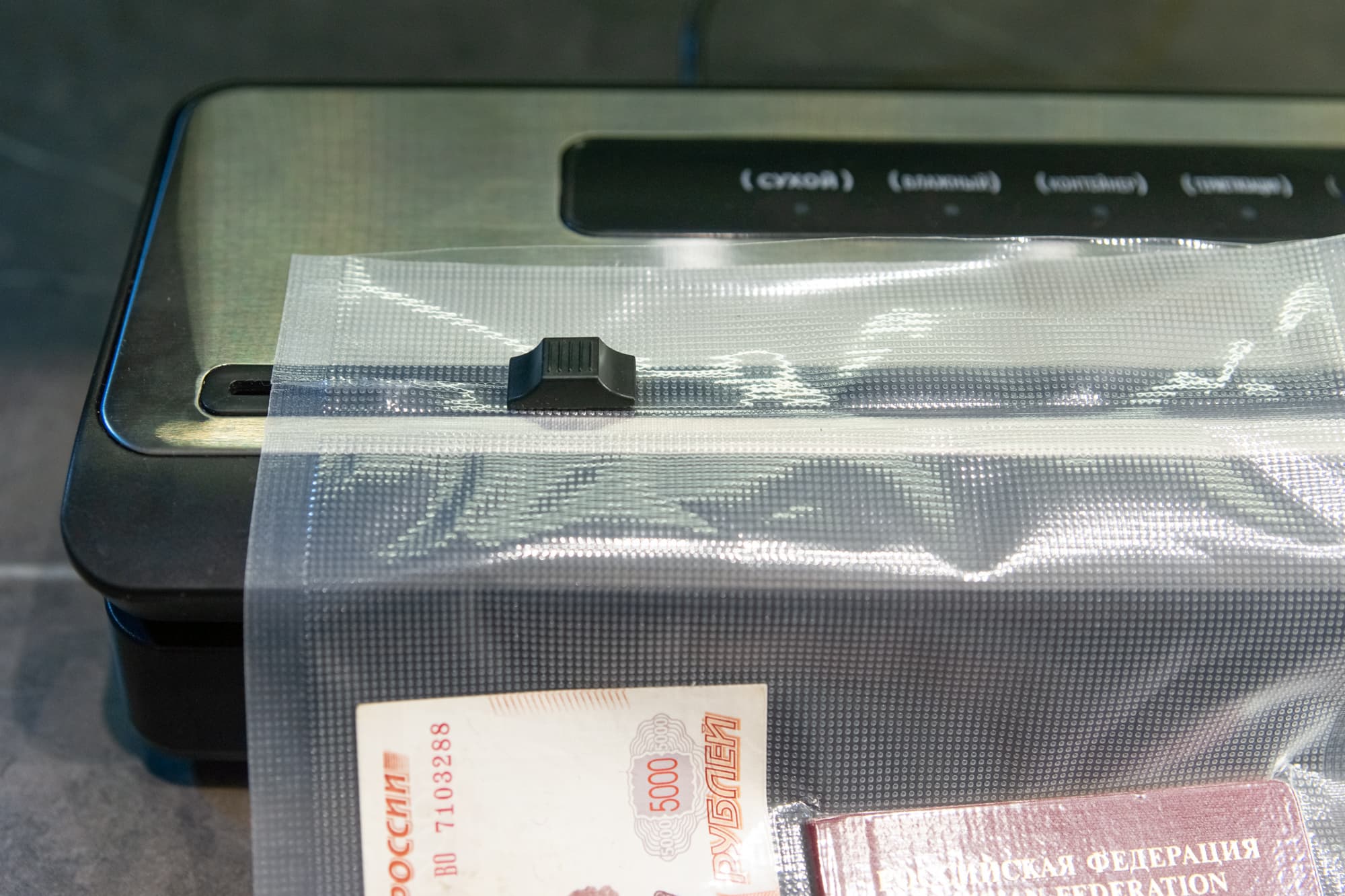 В сухом режиме вакууматор откачивал воздух около 20-25 секунд и еще 5 ушло на запаивание шва.
