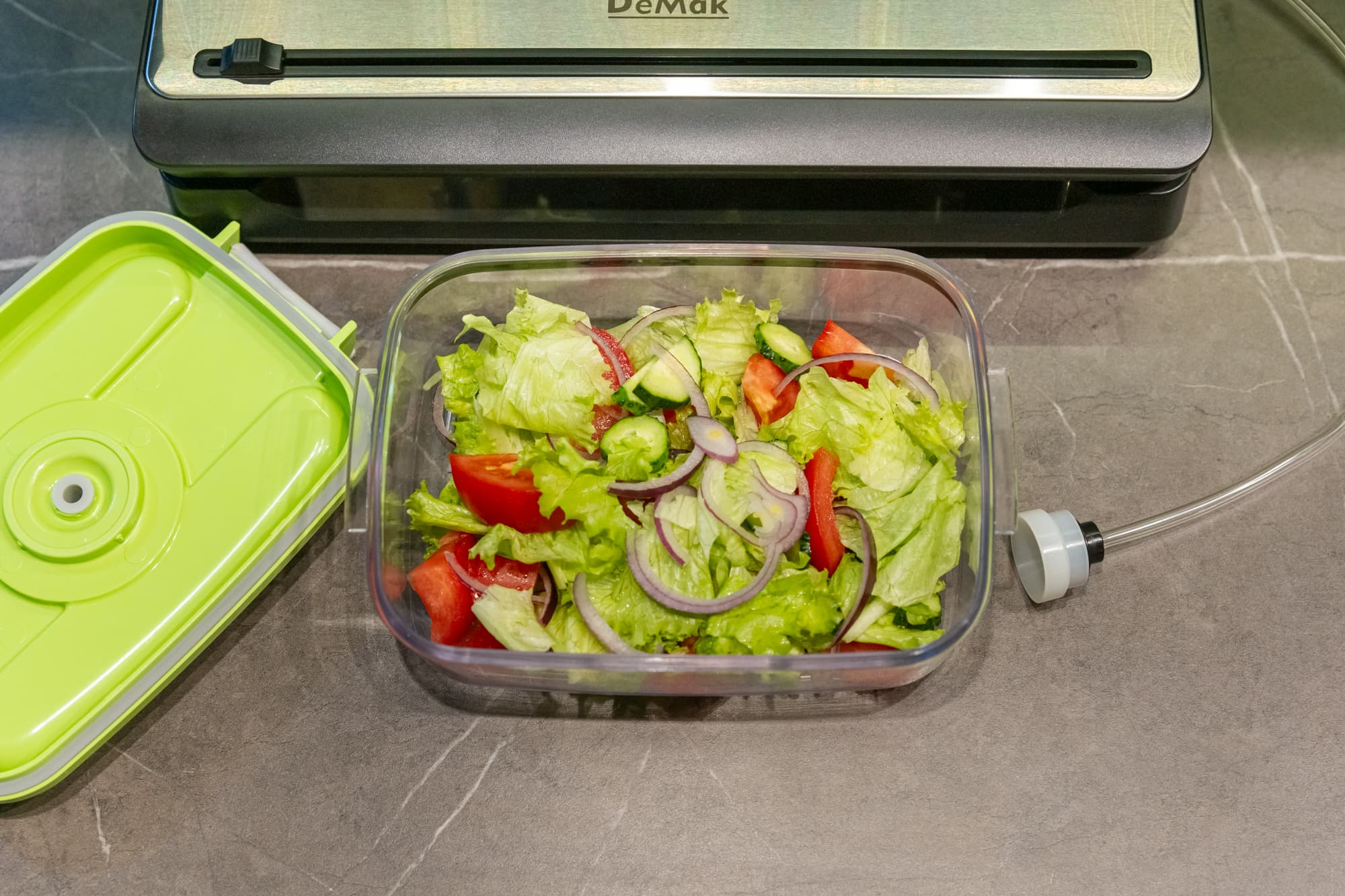 Этот тест позволит нам наглядно продемонстрировать, насколько эффективно вакууматор DeMak удаляет воздух из пакета.