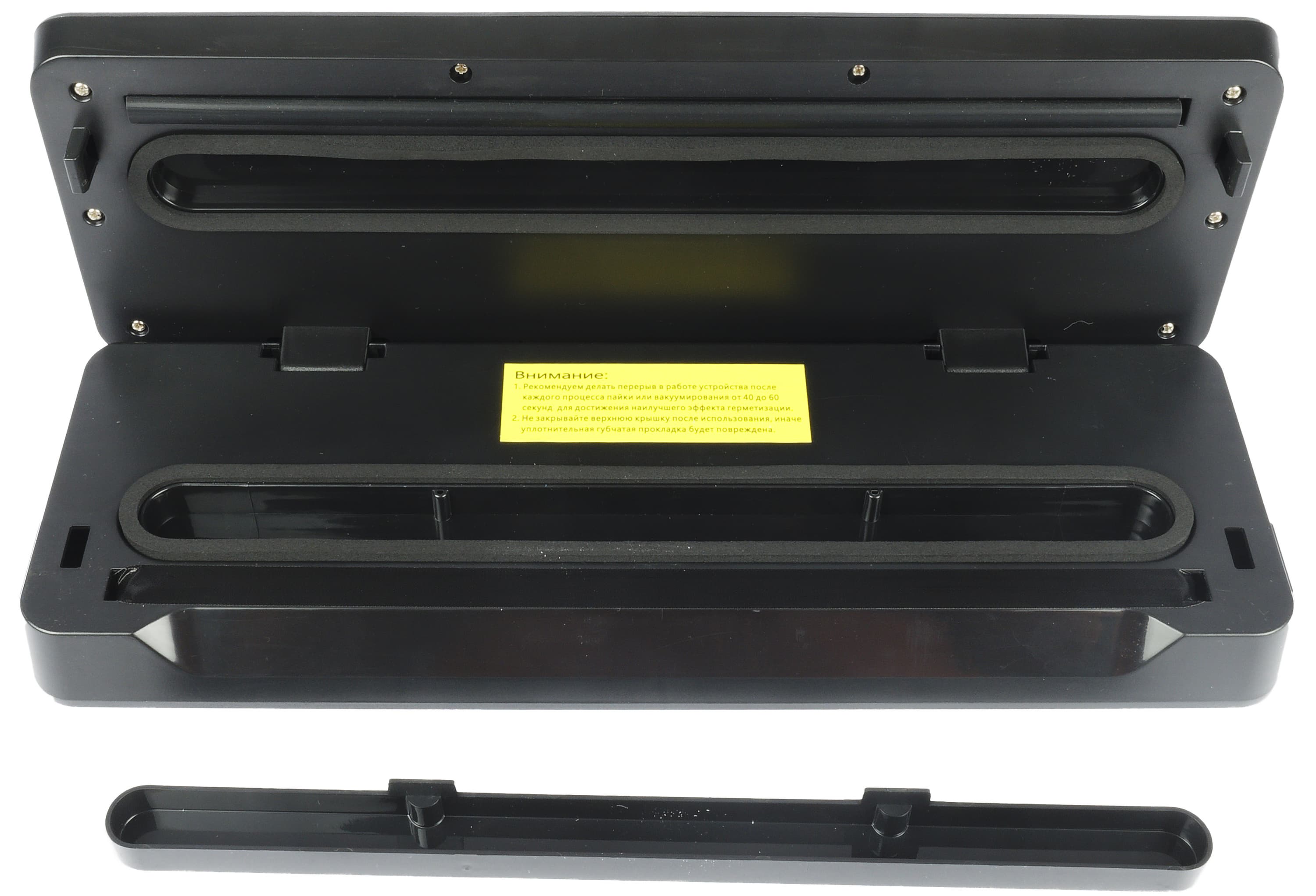 При хранении крышку вакууматора нельзя держать защелкнутой, так как от постоянного давления со временем уплотнители могут деформироваться.