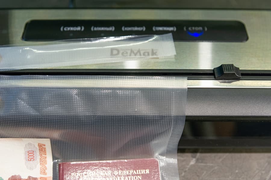 Стоит помнить, что запайка не произойдет, если края пакета мокрые. Поэтому за чистотой и сухостью краев пакета нужно следить всегда. Если, при помещении продуктов внутрь края все же запачкались, достаточно просто протереть их бумажной салфеткой.