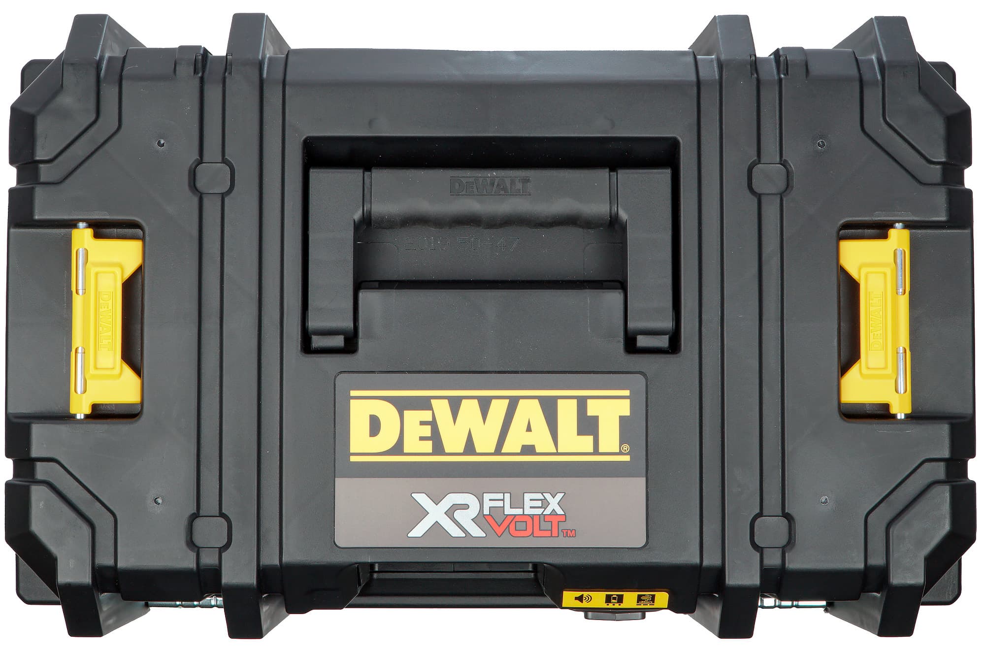 DeWalt DCV586MN с виду похож на ящик для инструментов, и это не простое совпадение: его форм-фактор рассчитан на совместимость с модульными системами хранения TSTACK и ToughSystem, что позволяет объединять модуль пылесоса с инструментальными контейнерами, органайзерами, сумками и тележками при складировании, использовании и перевозке.