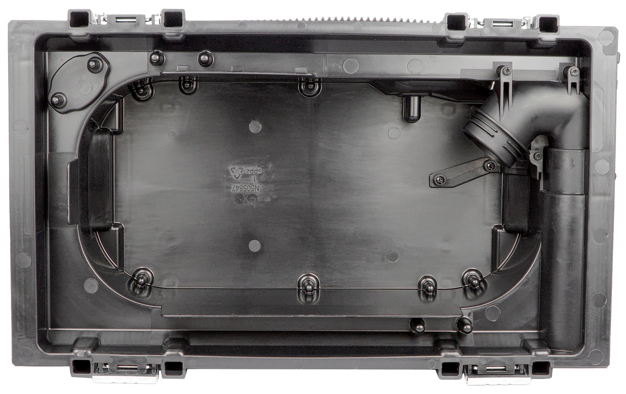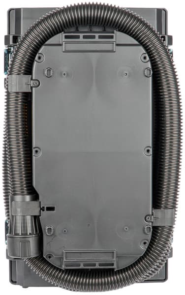 Корпус снабжен солидными ребрами жесткости, позволяющими выдержать значительный вес: при сборке модульной системы хранения производитель рекомендует размещать пылесос в самом низу стопки контейнеров. Верхняя крышка корпуса снабжена удобной ручкой для переноски и двумя ярко-желтыми защелками, обеспечивающими соединение этого модуля с другими элементами системы.