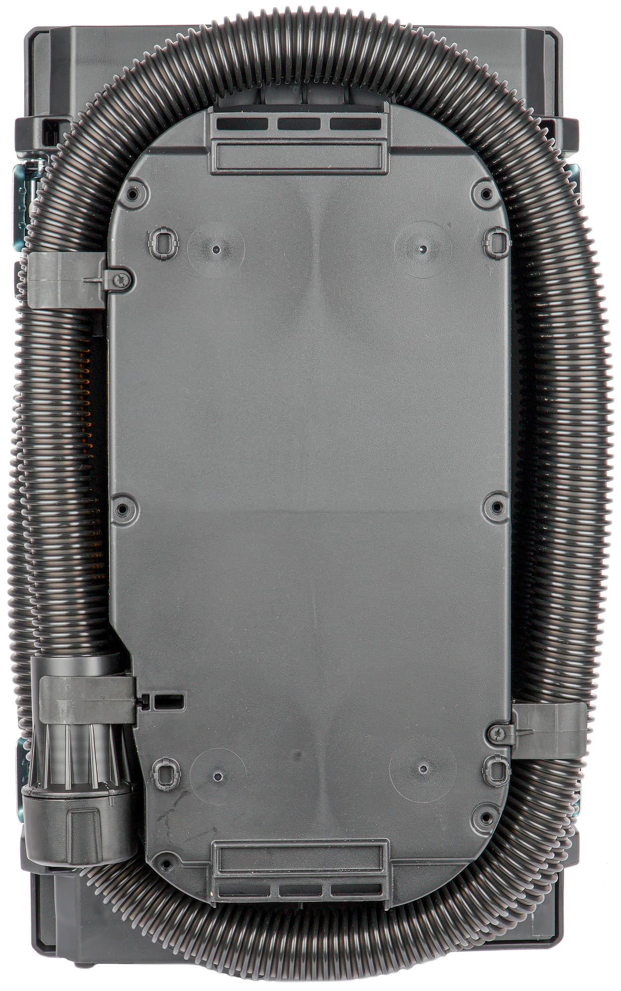 В «походном» положении шланг обвивается вокруг нижней части корпуса, делая два оборота. Для его фиксации предусмотрены полукруглые гнезда-защелки, по две с каждой стороны.