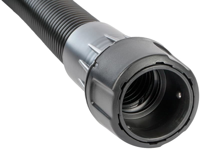 Гофрированный шланг длиной 2,5 метра и диаметром 32 мм заканчивается стандартным креплением для насадок систем пылеудаления с поворотной муфтой и тремя фиксаторами, выдвигающимися из внутренней поверхности при вращении муфты.