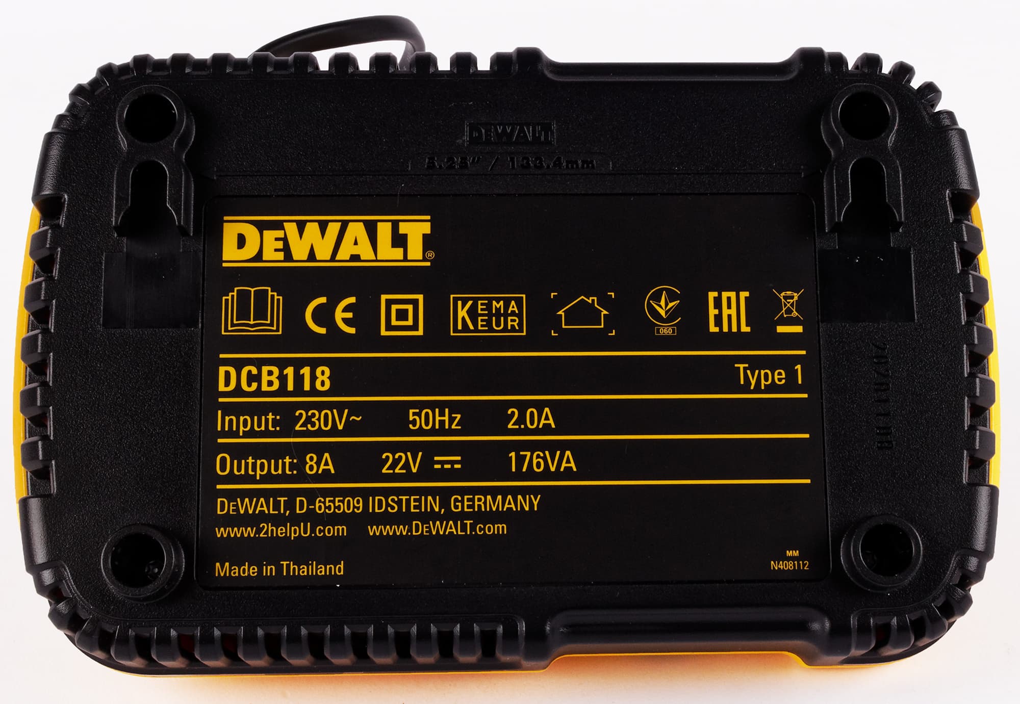 Согласно информации на упаковке и корпусе, зарядное устройство произведено в Таиланде, а по информации на сайте — в Чехии. Не будем спешить обвинять DeWalt в ошибке: нельзя исключить вариант, что истинными являются оба утверждения.