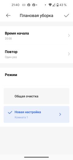 Самая важная функция для домашнего робота — возможность гибкой настройки уборки по расписанию. У Dreame D10s с этим все в порядке: для каждой задачи мы можем установить время выполнения, день недели и тип уборки.