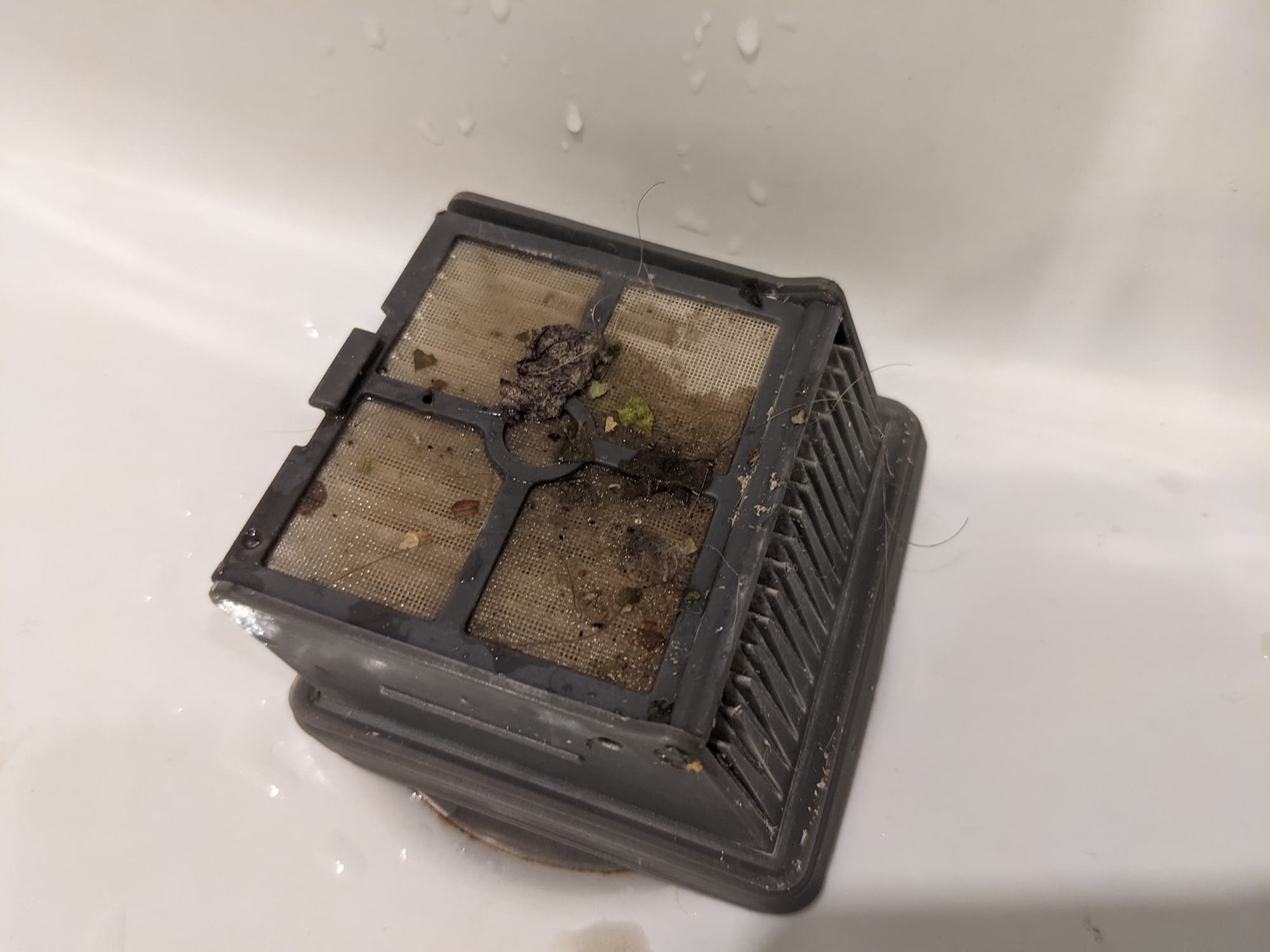 Заметное количество мусора скапливается на капроновой сетке, защищающей фильтр тонкой очистки. Ее следует очищать после каждой уборки.
