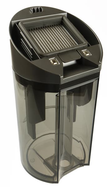 Отработанная вода поступает в мусоросборник через вертикальную трубку в центре емкости и скапливается в стакане контейнера, а поток воздуха покидает его через фильтр в верхней крышке.
