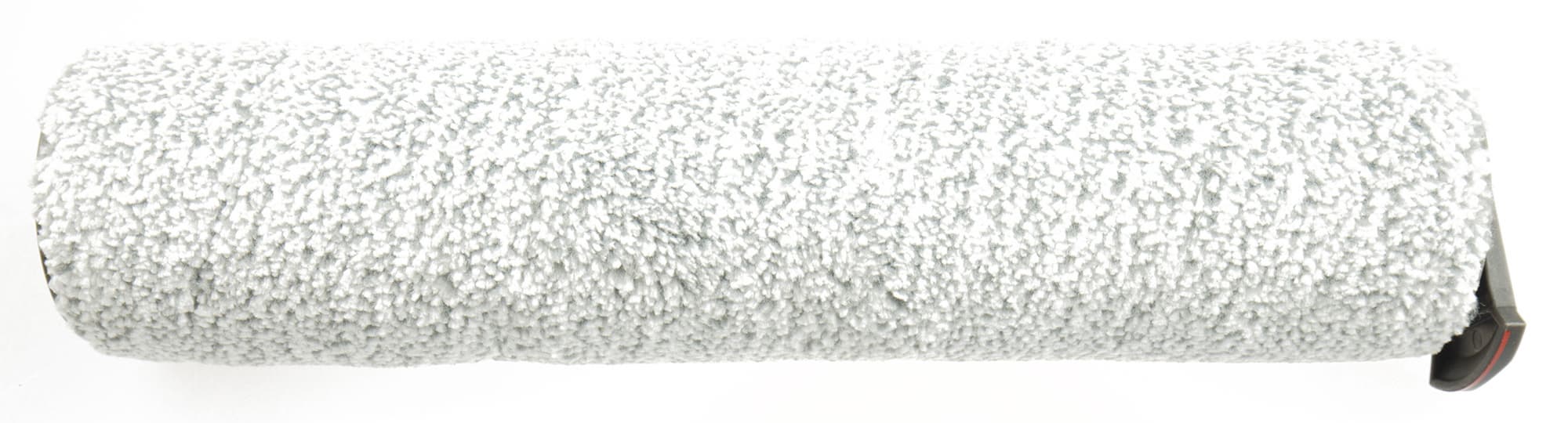 Щетка для пола сделана из мягкой впитывающей ткани светло-серого цвета. Еле заметный спиралевидный рисунок на ней проступает на влажном материале и позволяет контролировать вращение ротора. В сухом состоянии он почти не заметен.