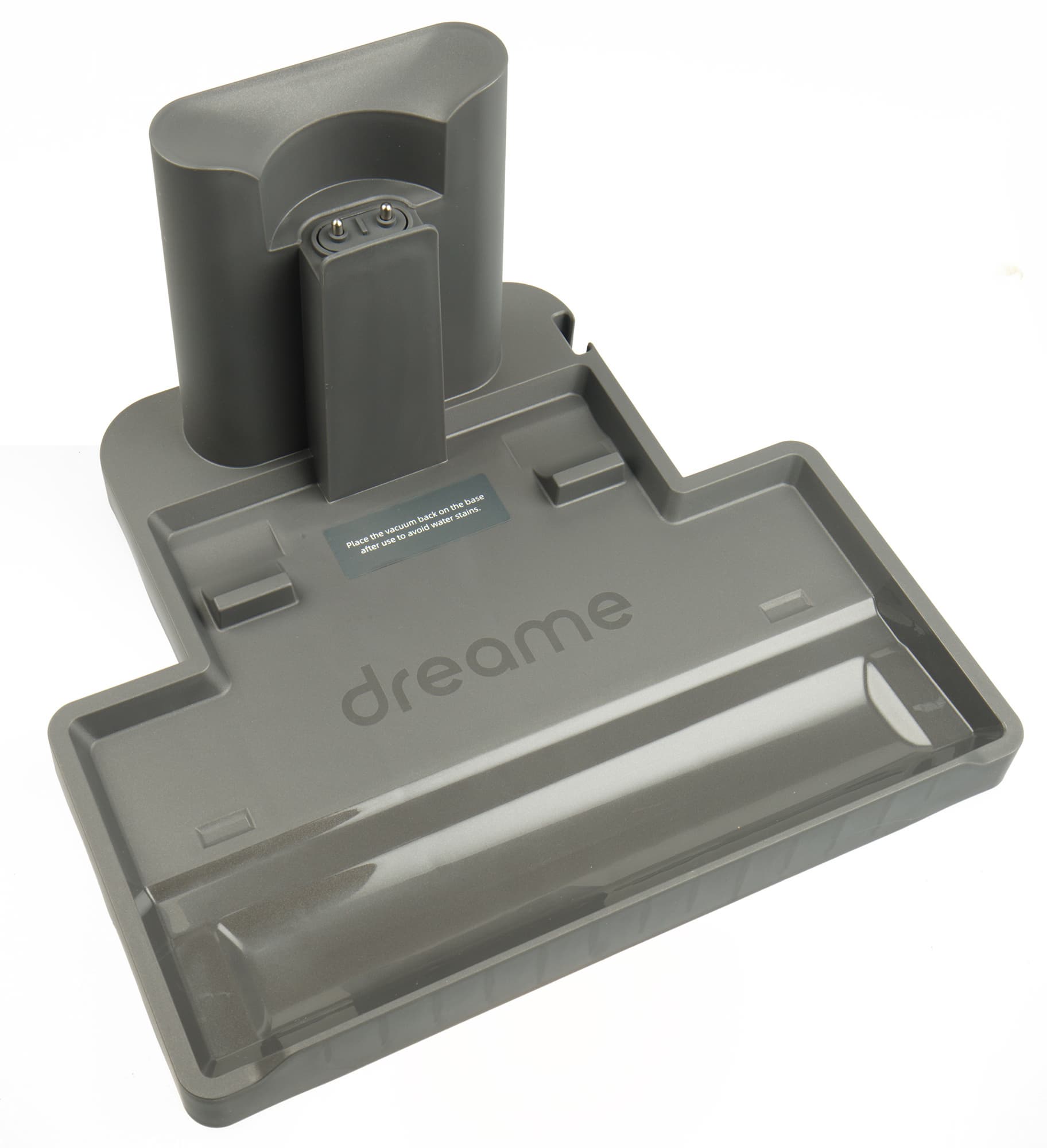 База пылесоса используется для зарядки и самоочистки: под щеткой установленного на подставку прибора находится емкость, в которой ротор промывается после уборки.